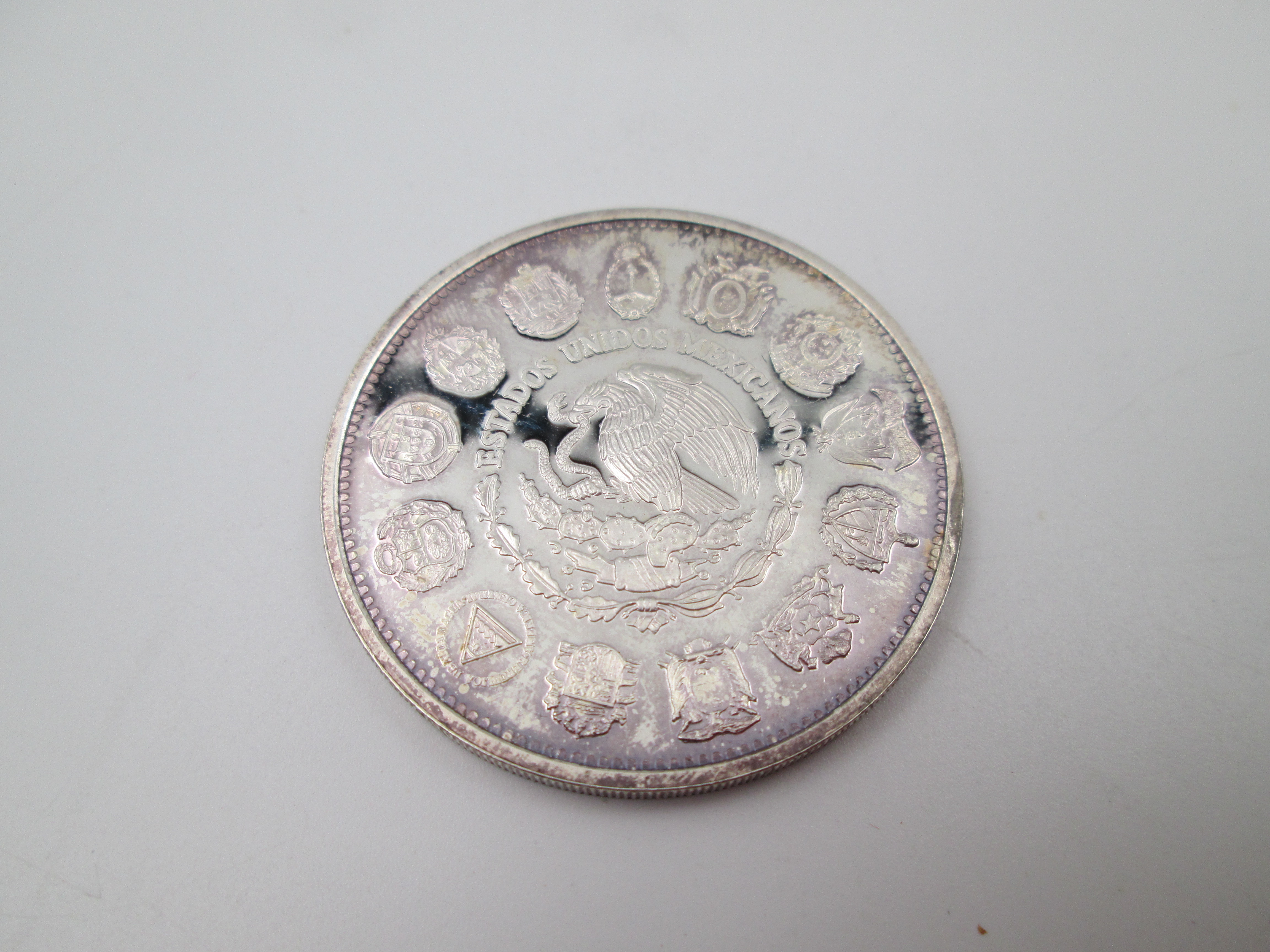 100 pesos United Mexican States coin. Meeting of two worlds. 925 sterling silver. 1991