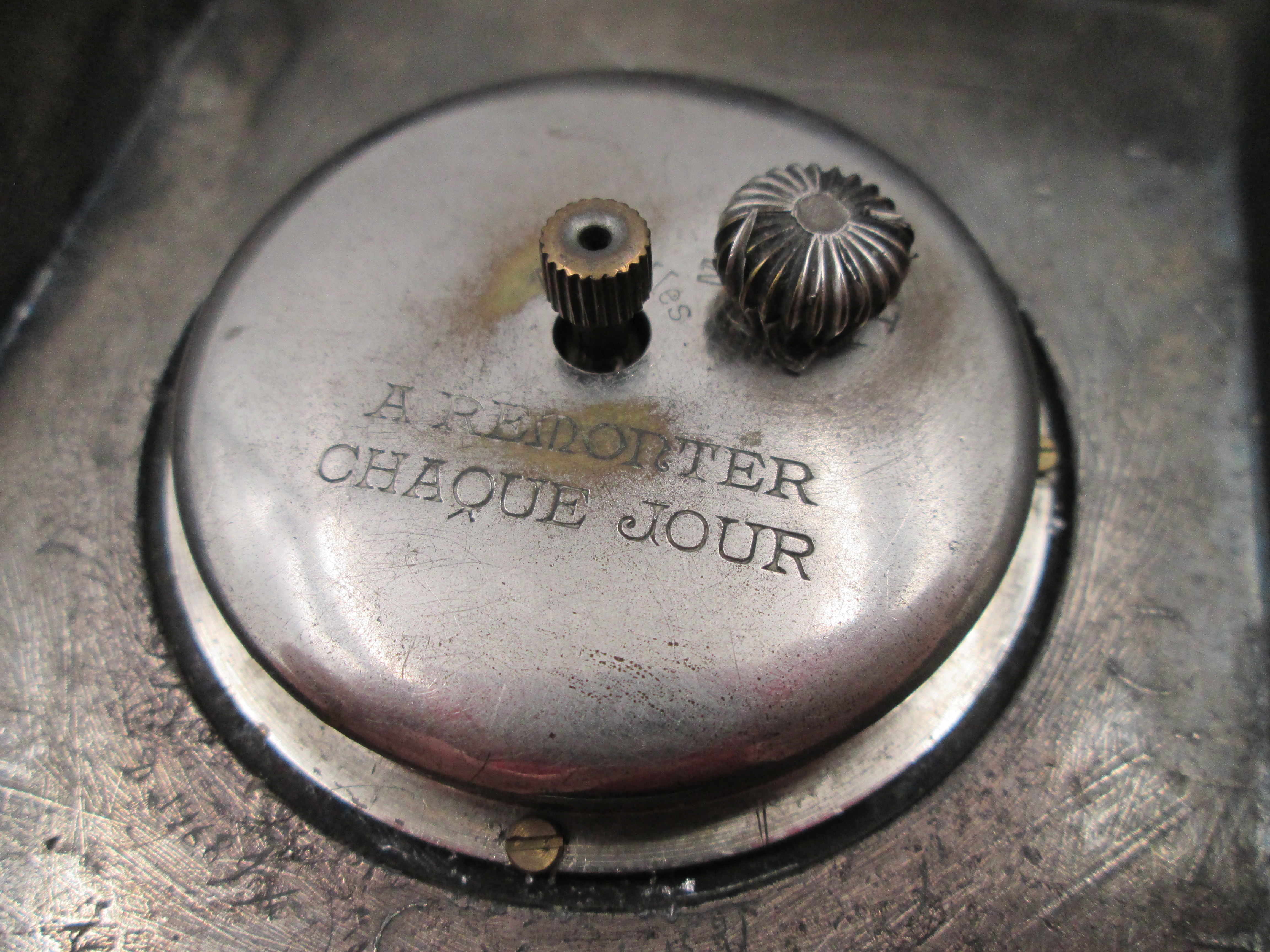 Brand: Lip. Wind-up mechanism. Ornate iron.