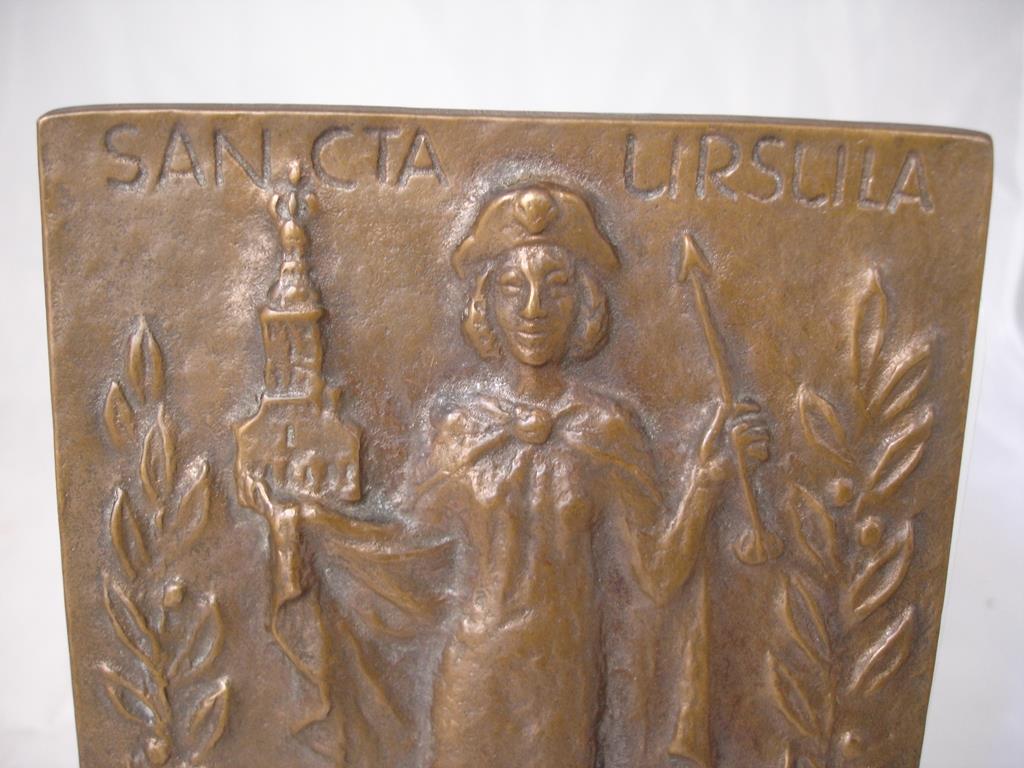 Bronze plaque. St. Ursula. Circa: 1970's. High relief.