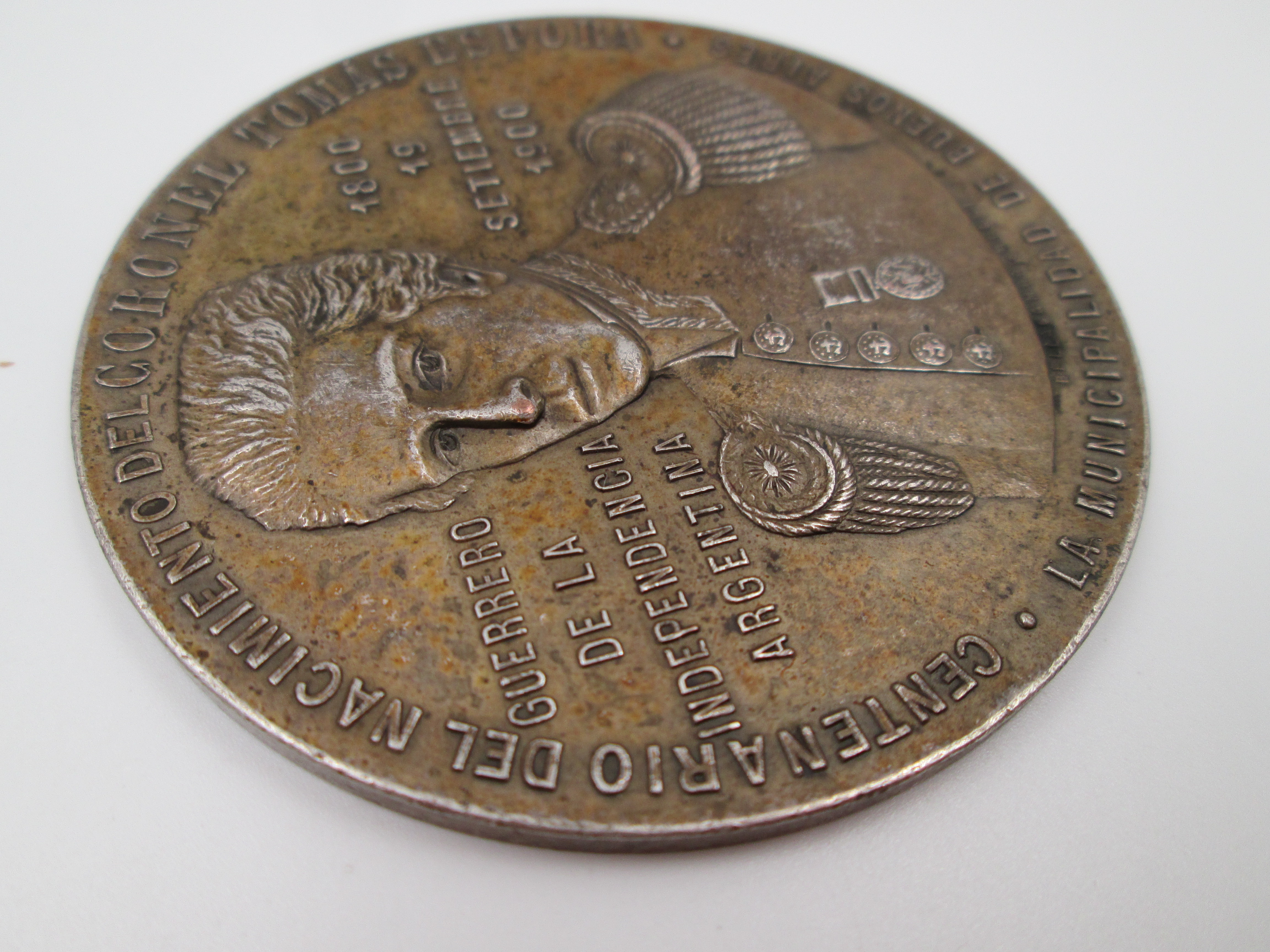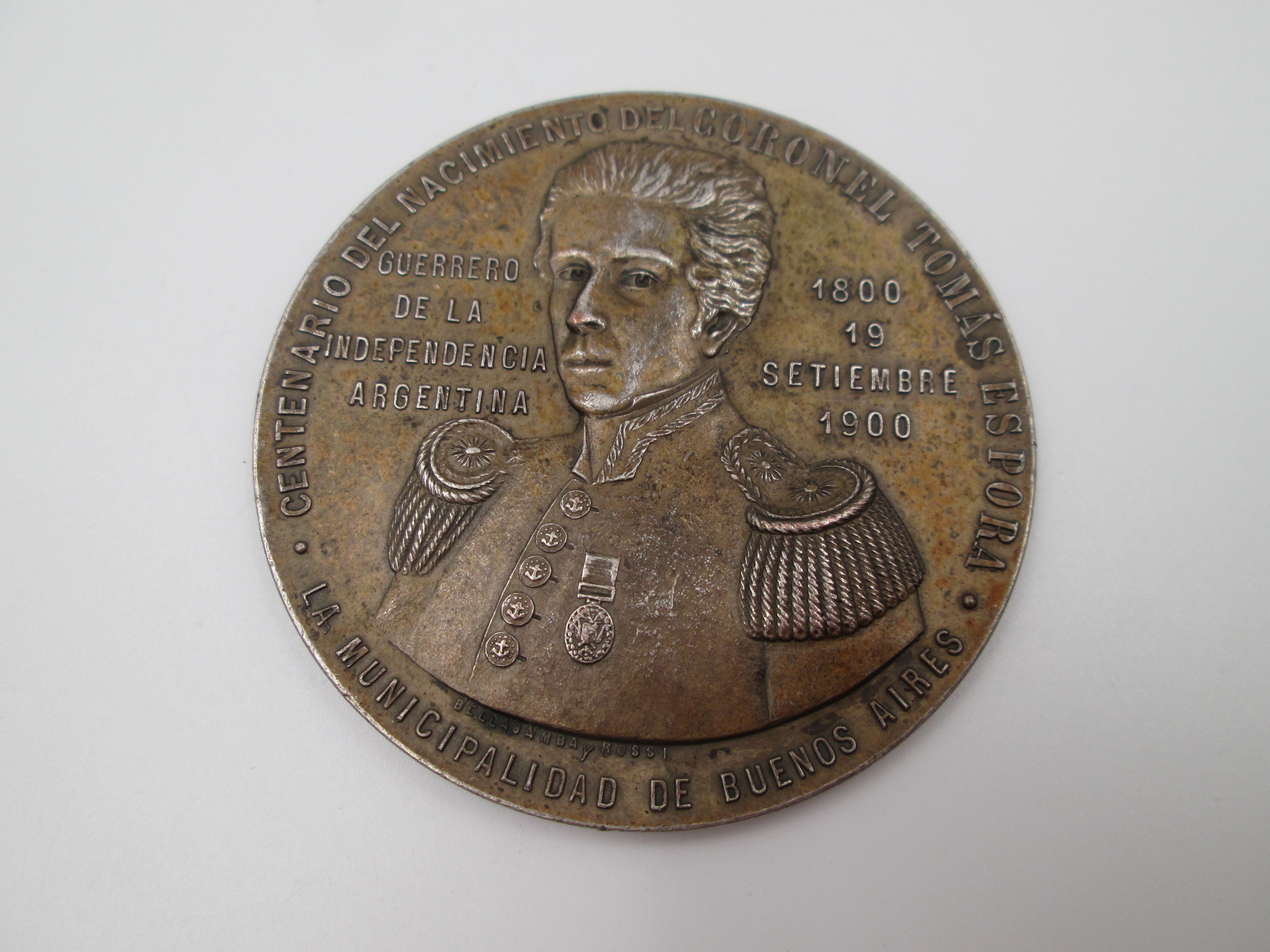 Centenary birth of Colonel Tomas Espora bronze medal. Bellagamba and Rossi, 1900