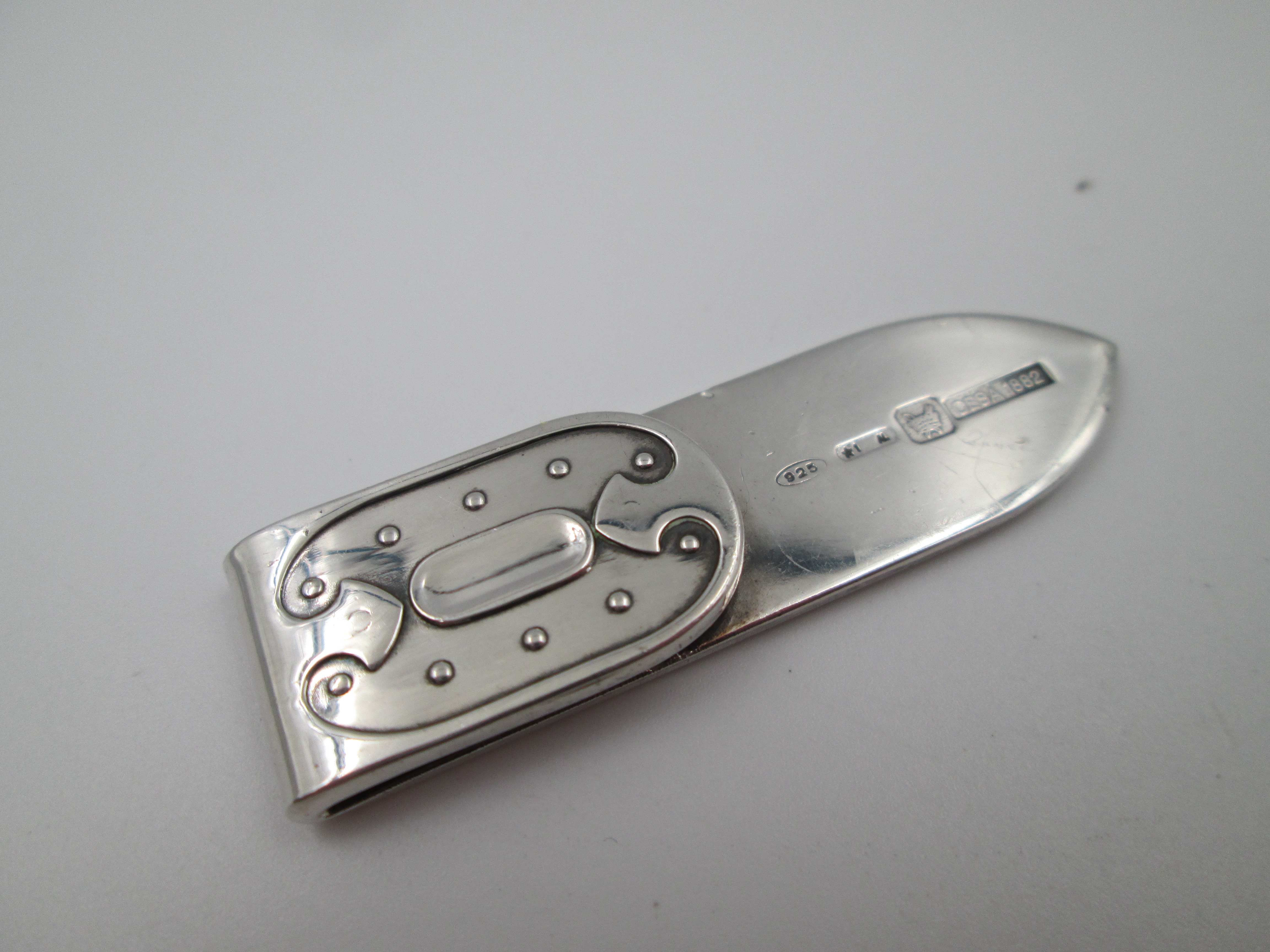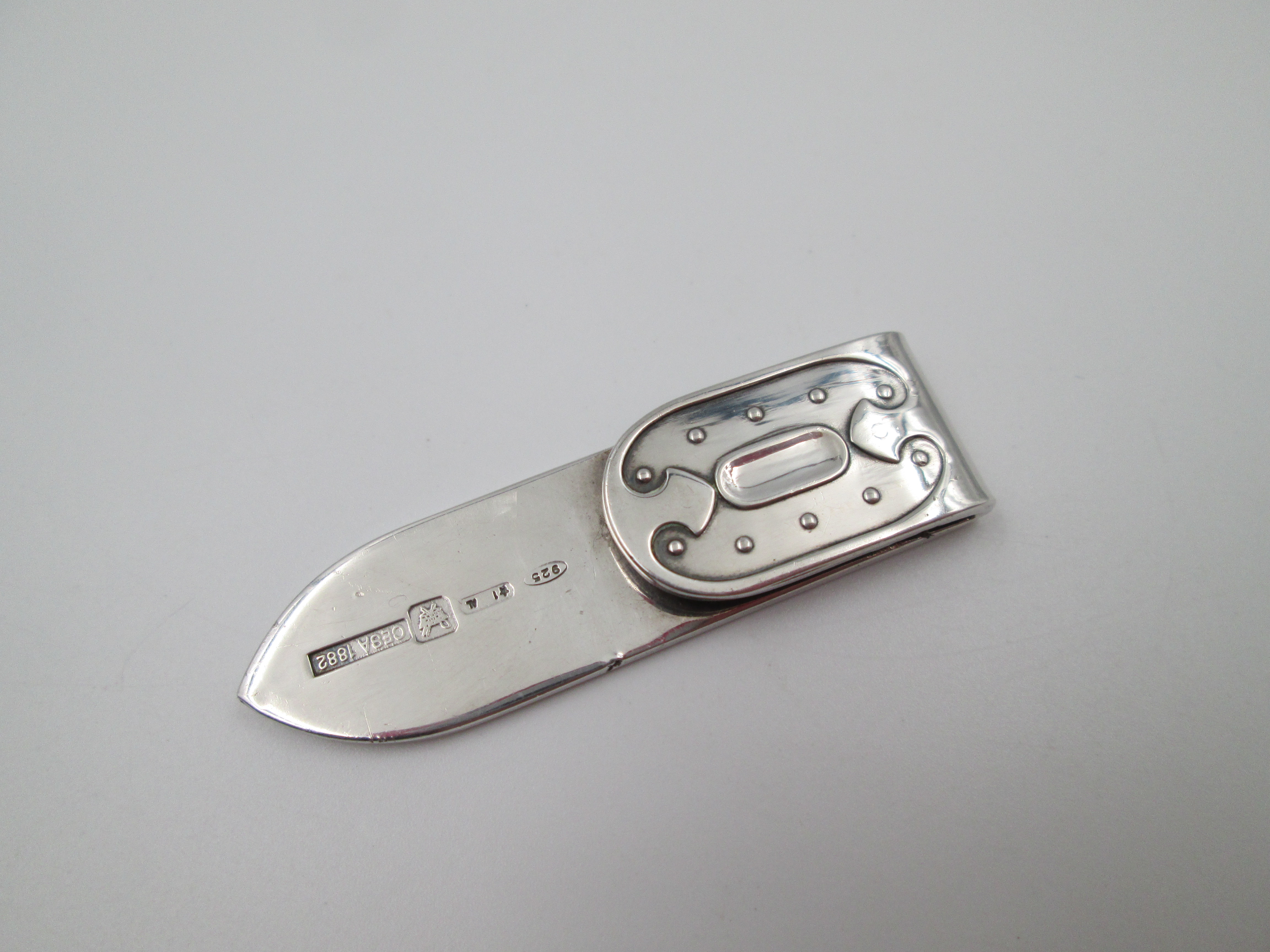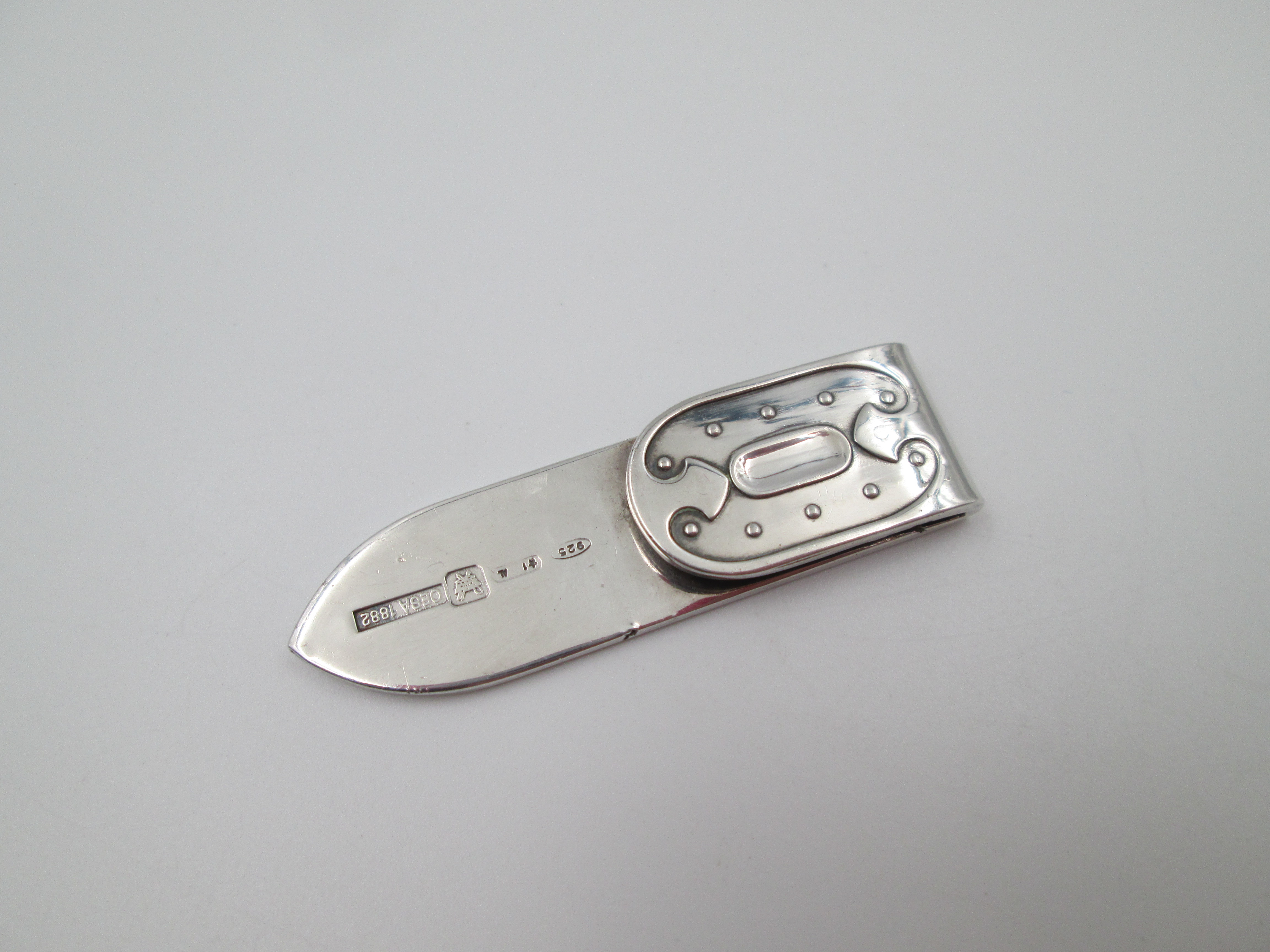 CESA 1882 money clip. Sterling silver (925). Ornate emblem on front. Italy. 1980's