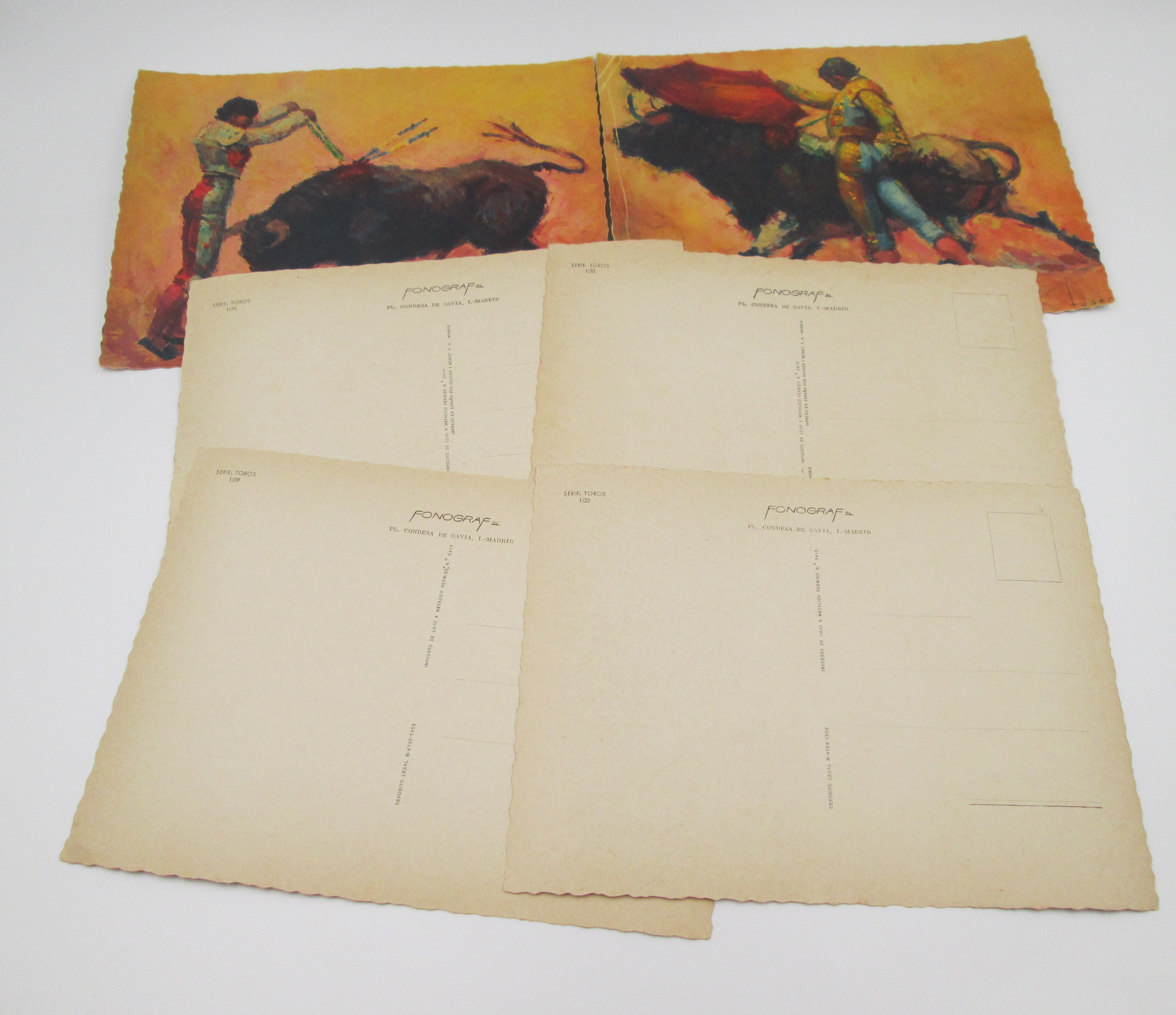 Collection of six colour bullfighting postcards (Tuser painter). Fonograf editions. 1959
