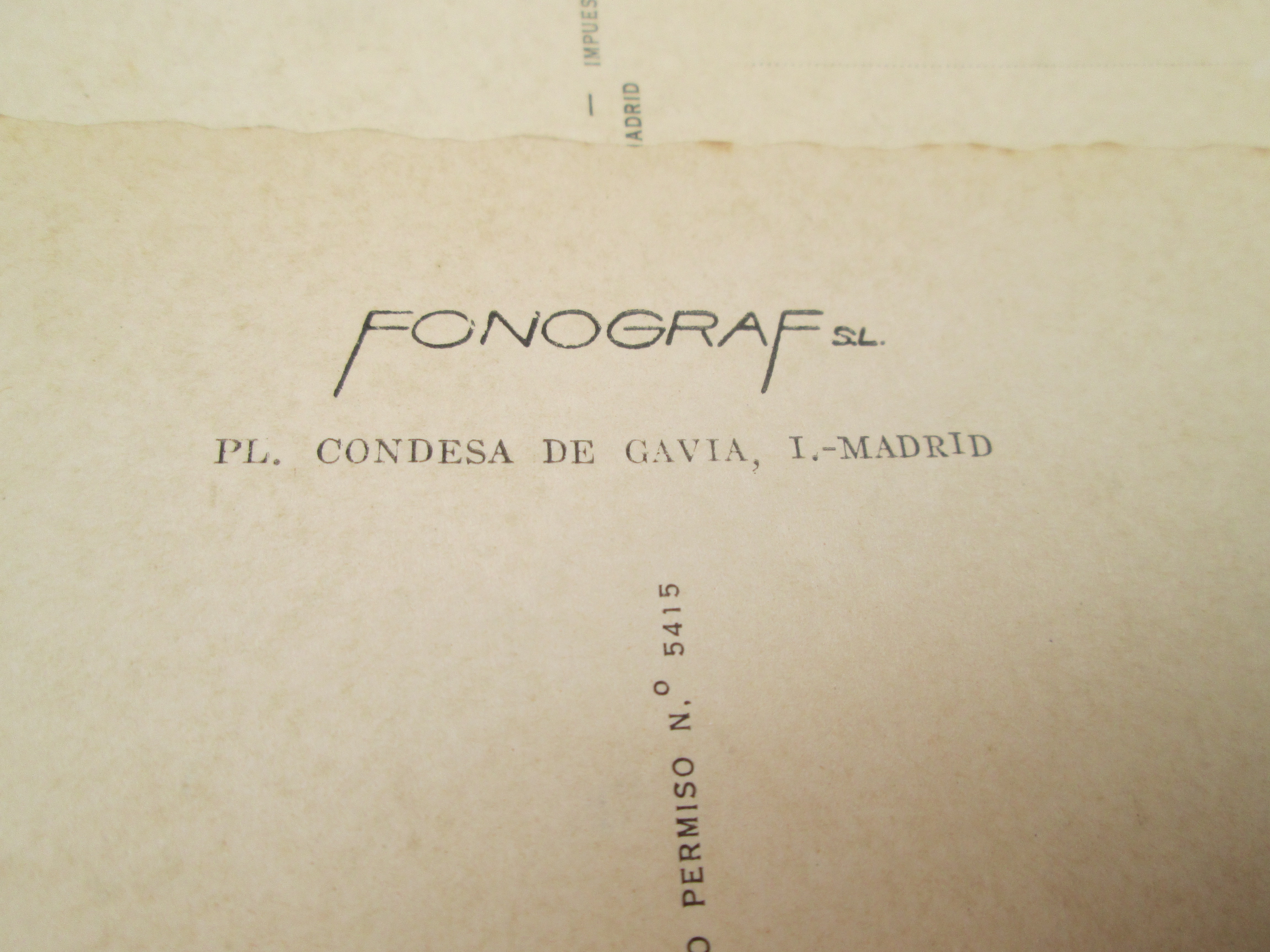 Circa: 1959. Spain. Fonograf editions (Madrid).
