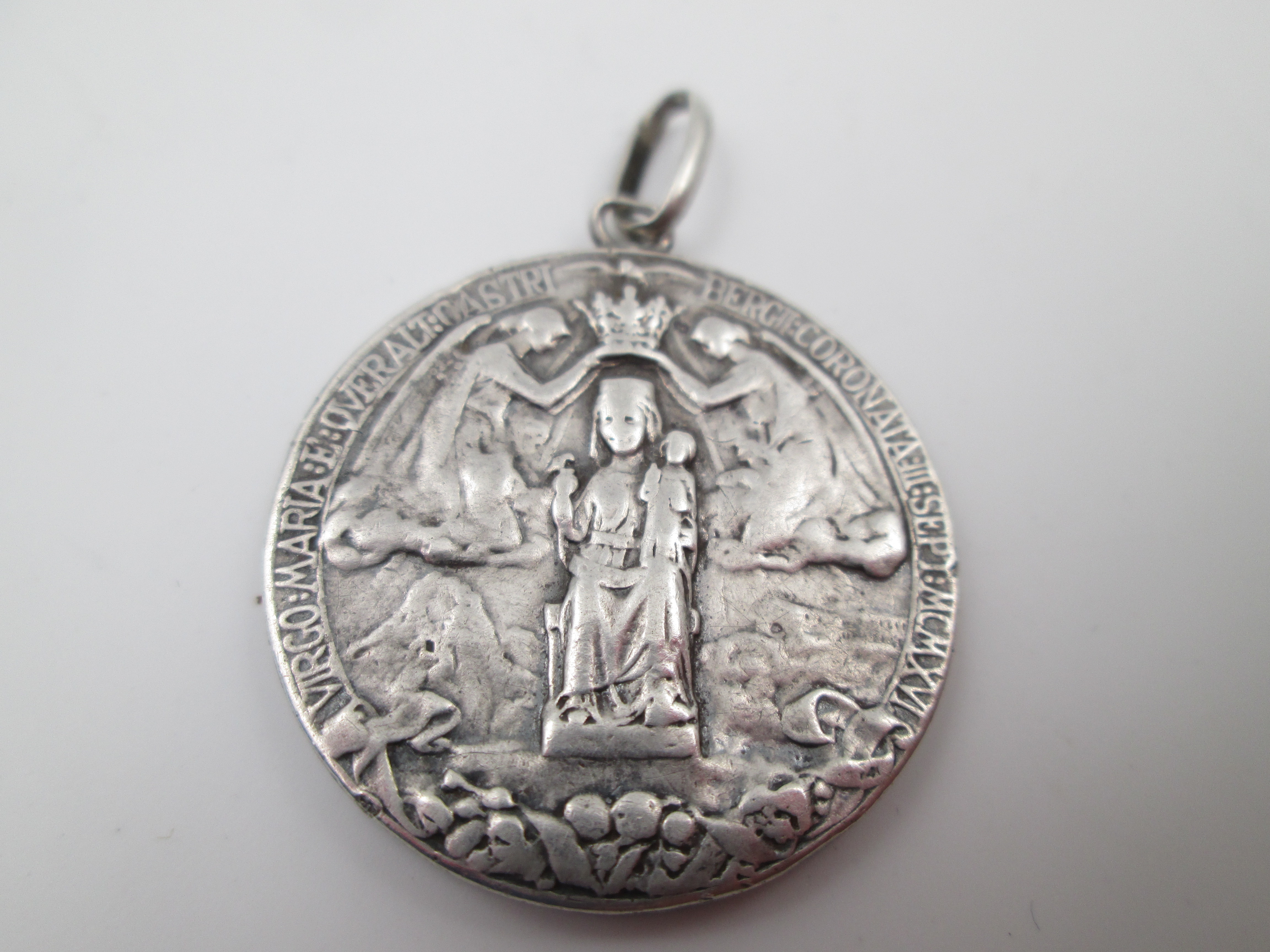 Coronation of the Virgin of Queralt (Berga) medal. Sterling silver. Hole and ring. 1916