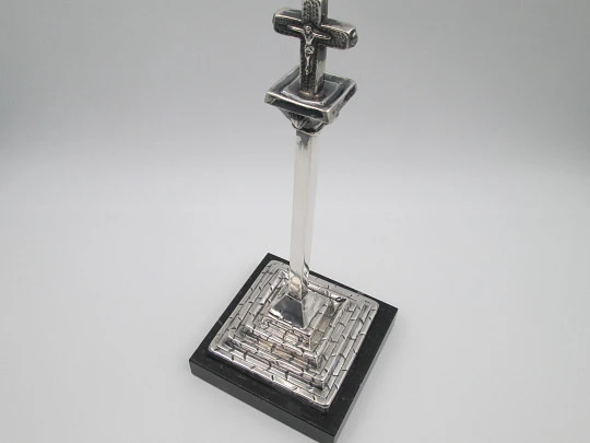 Cross on pillar. 925 sterling silver with black marble stand. Malde silversmith's. Spain. 1990's