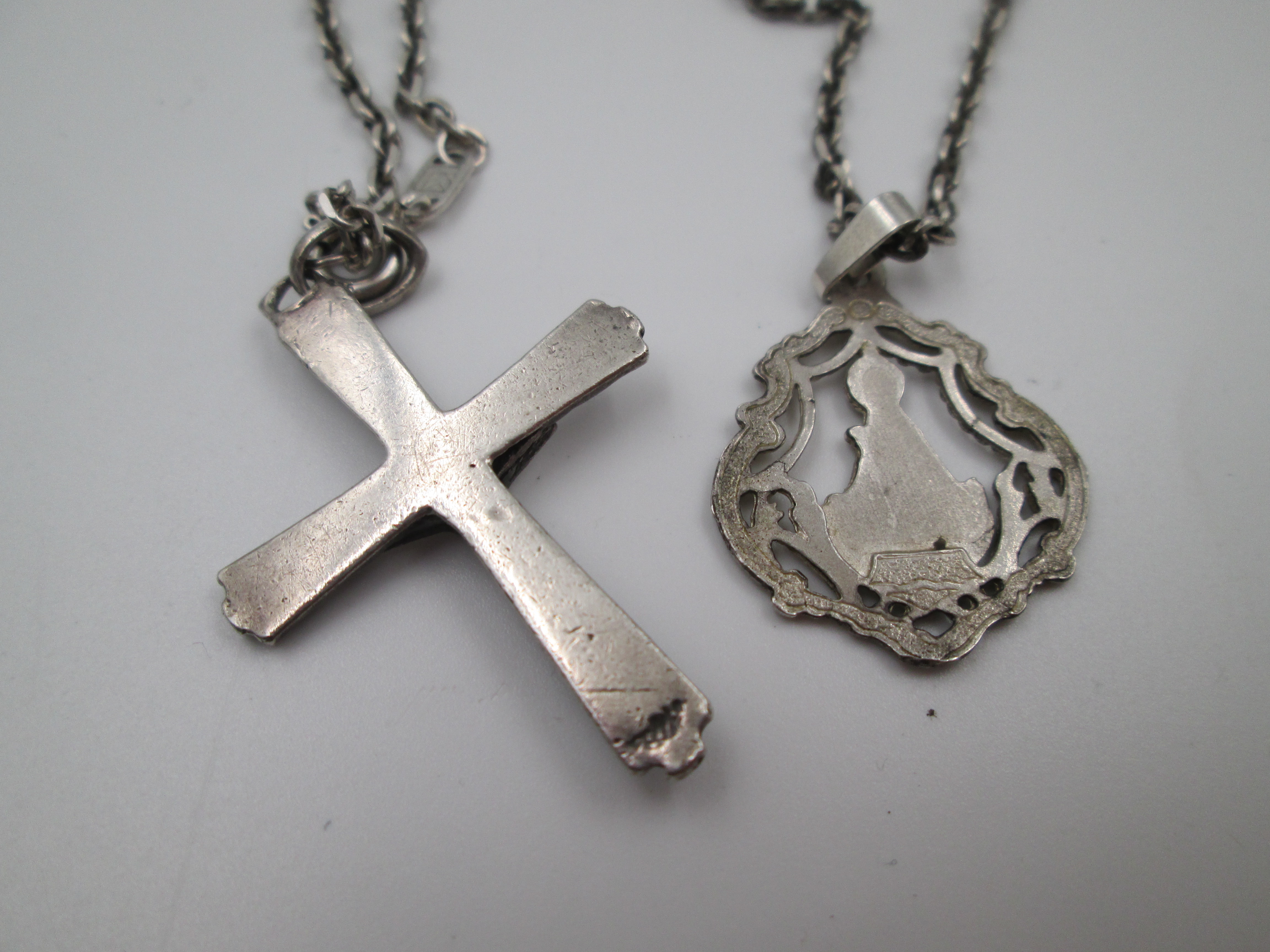 Virgin medals and pendant crucifixes.