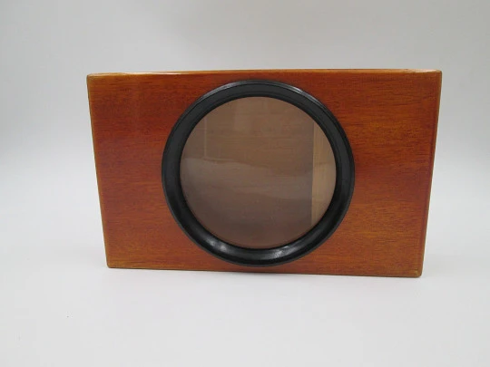 Desktop magnifying glass postcards and photos viewer. Mahogany wood and metal