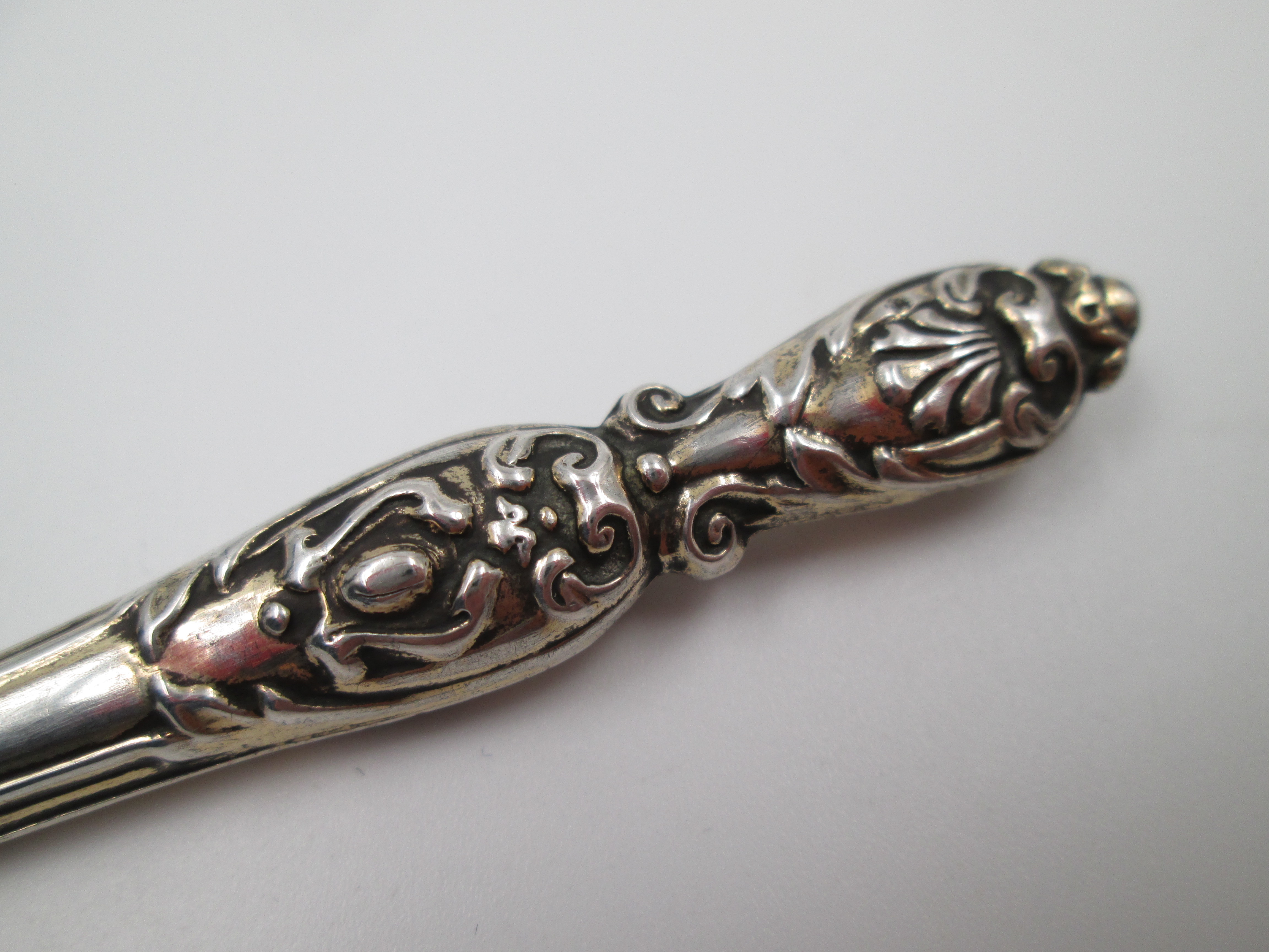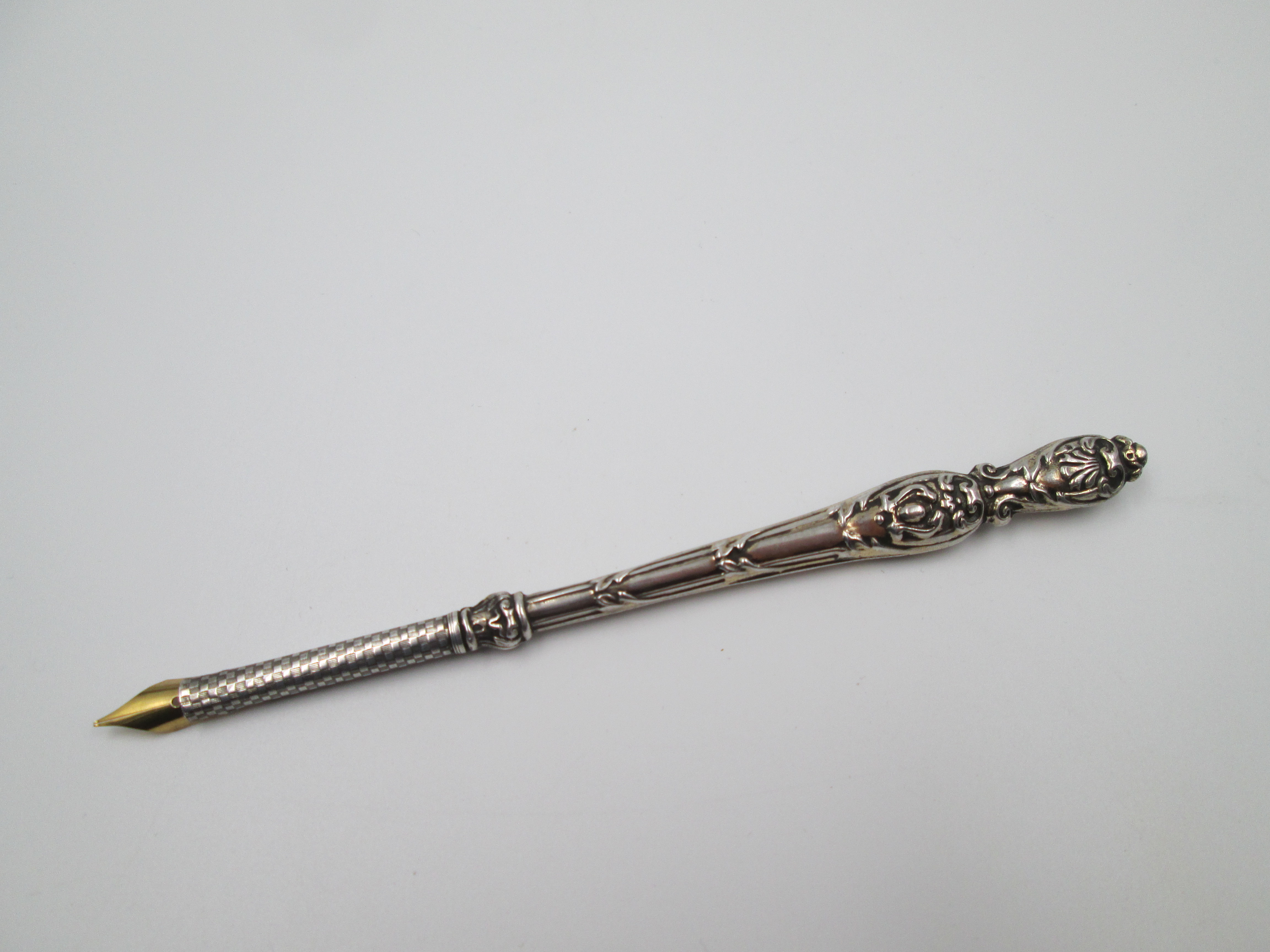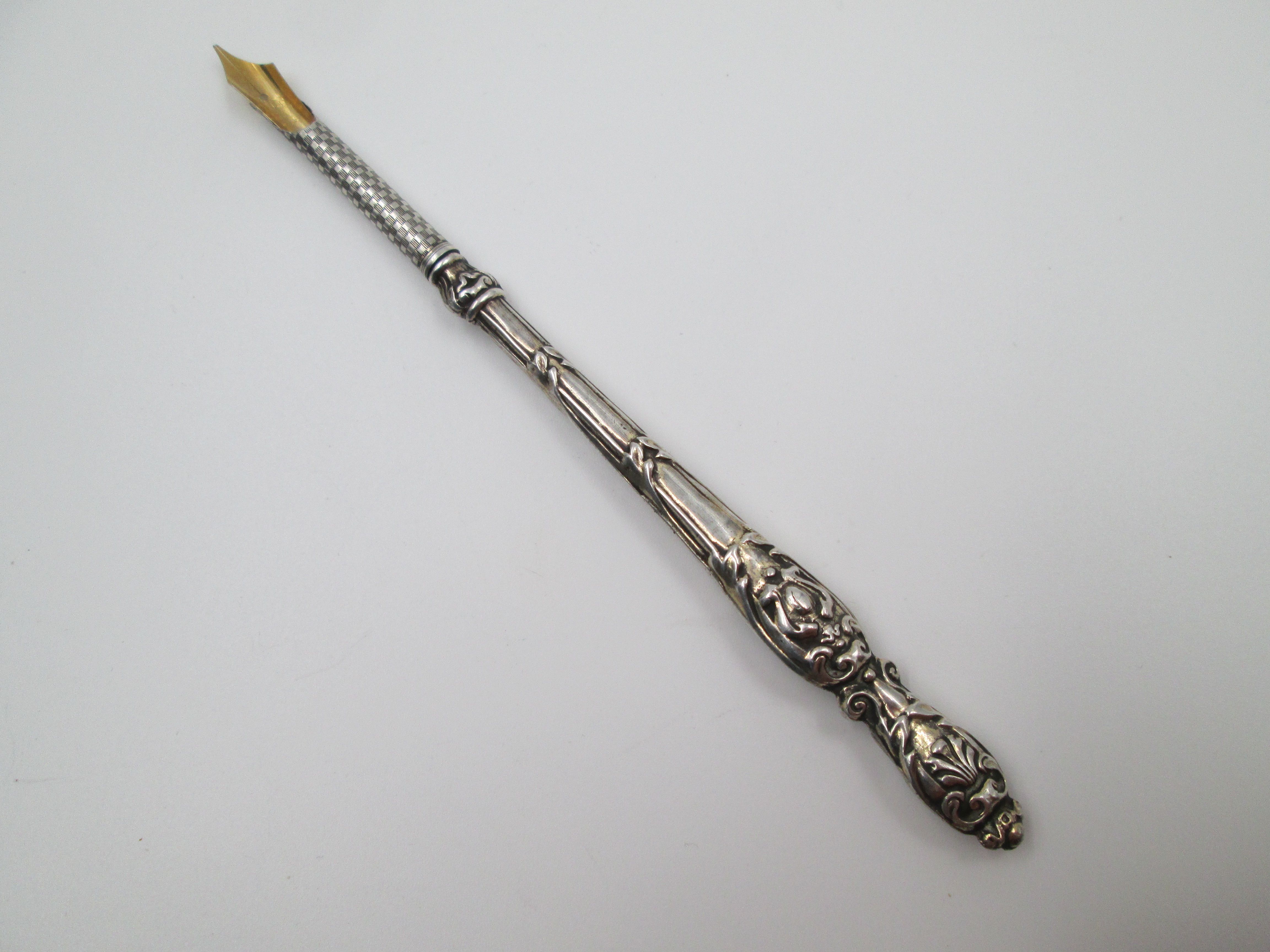 Dip calligraphy pen. Sterling silver. Shells & vegetable motifs. Europe. 1900's
