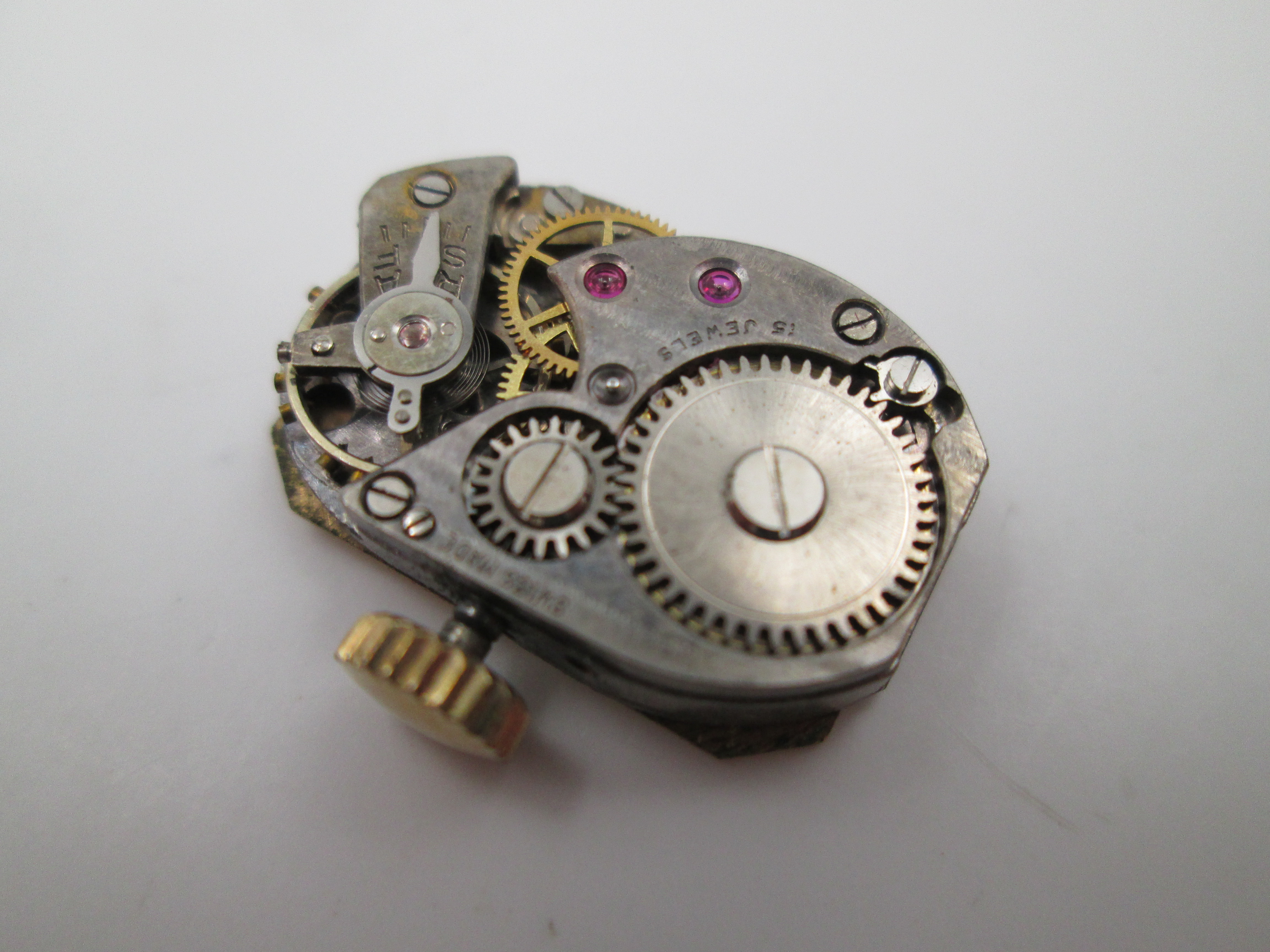 Dulux women's pendant watch. Rhodium plated metal. Sterling silver brooch. 1940's
