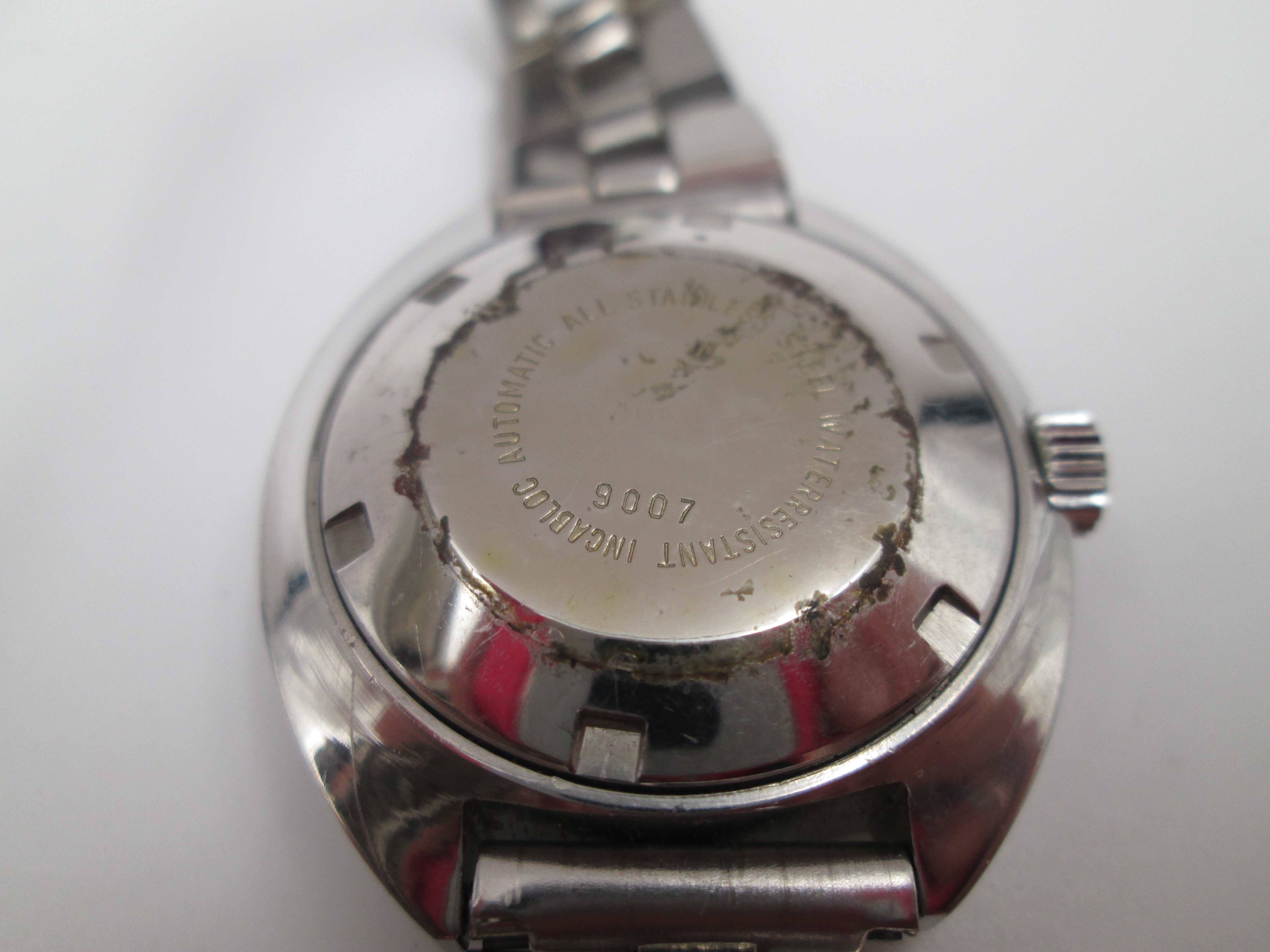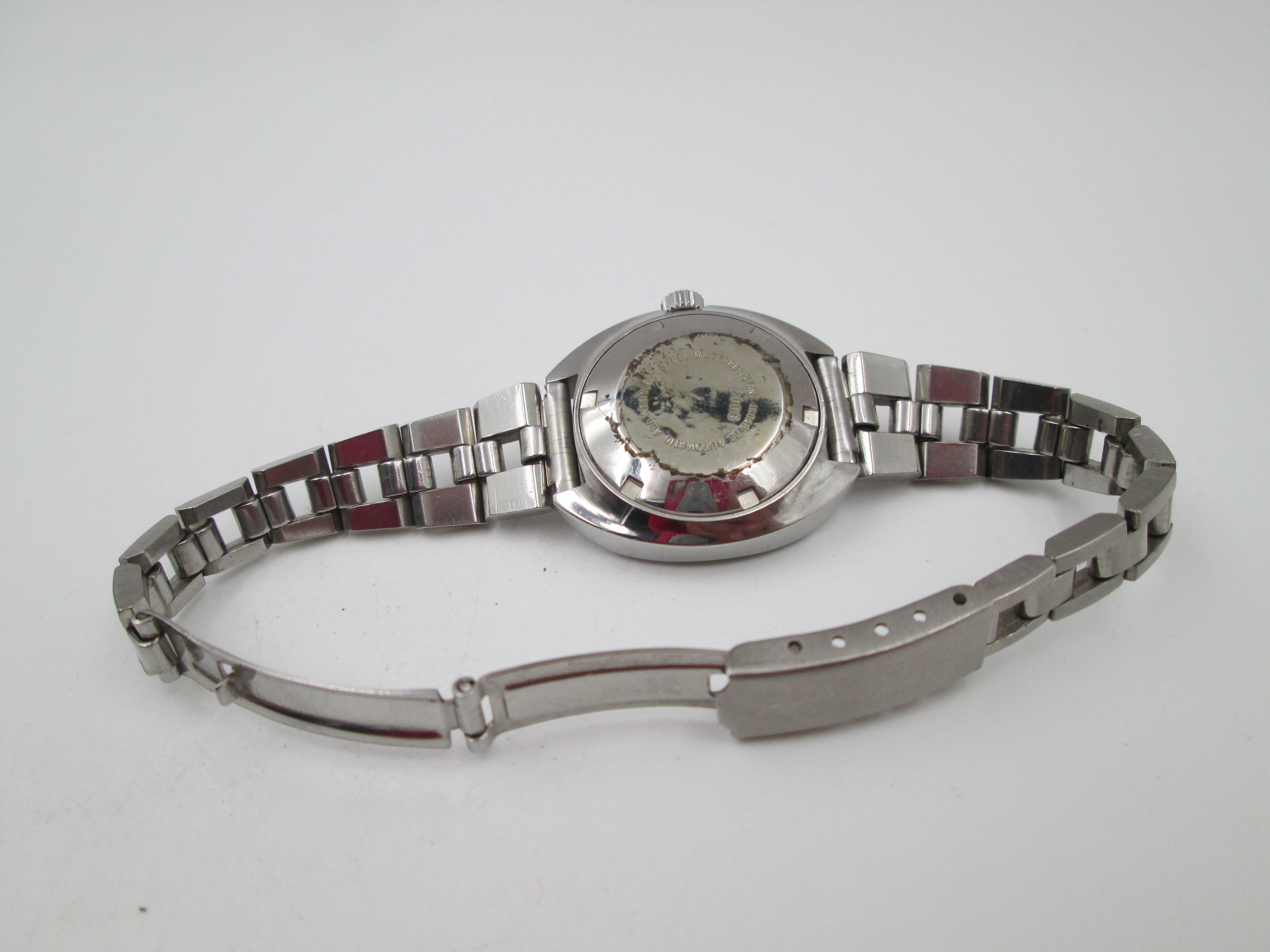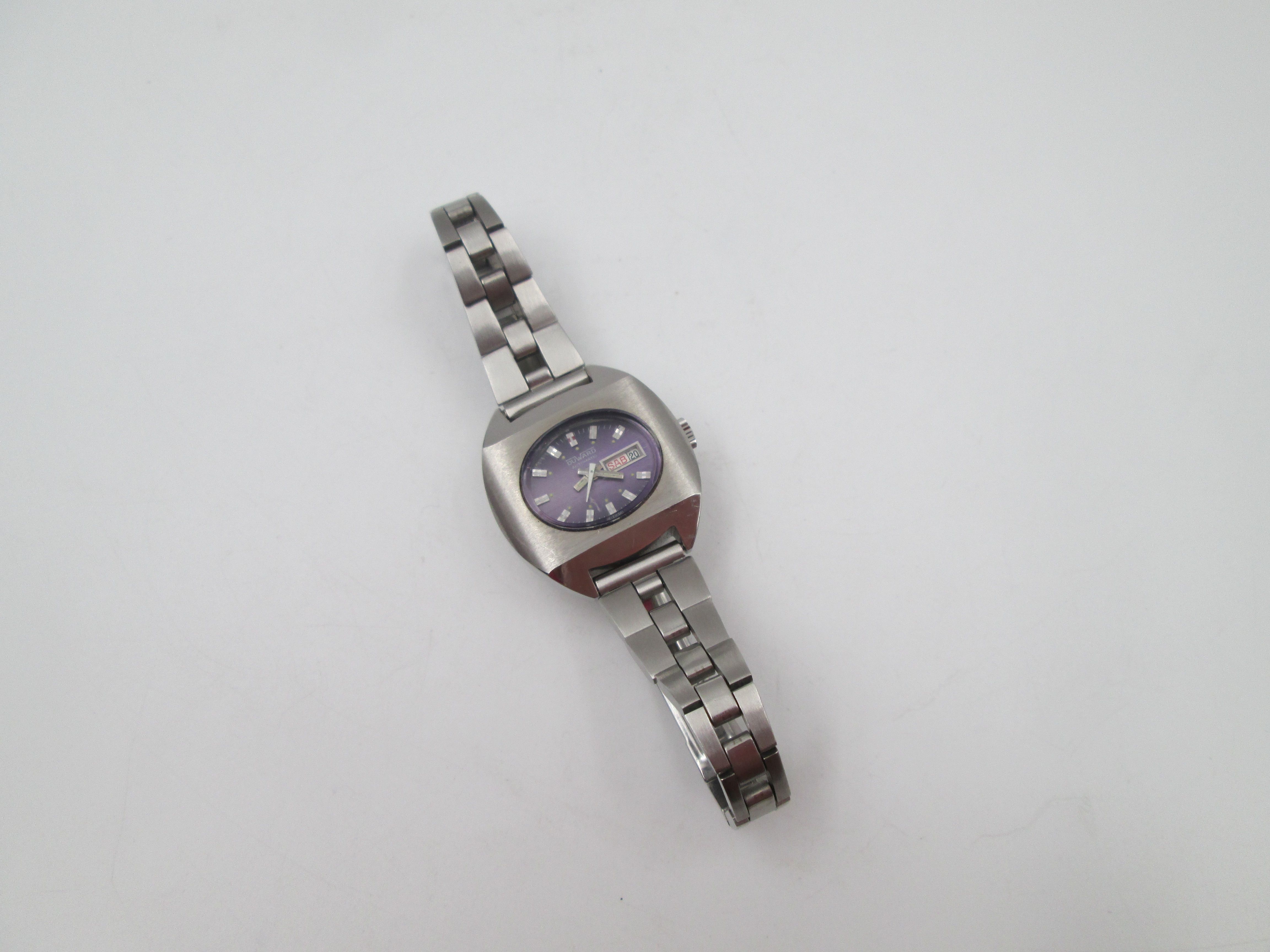 Duward women's automatic watch. Stainless steel. Purple dial. Calendar. Bracelet. 1970's