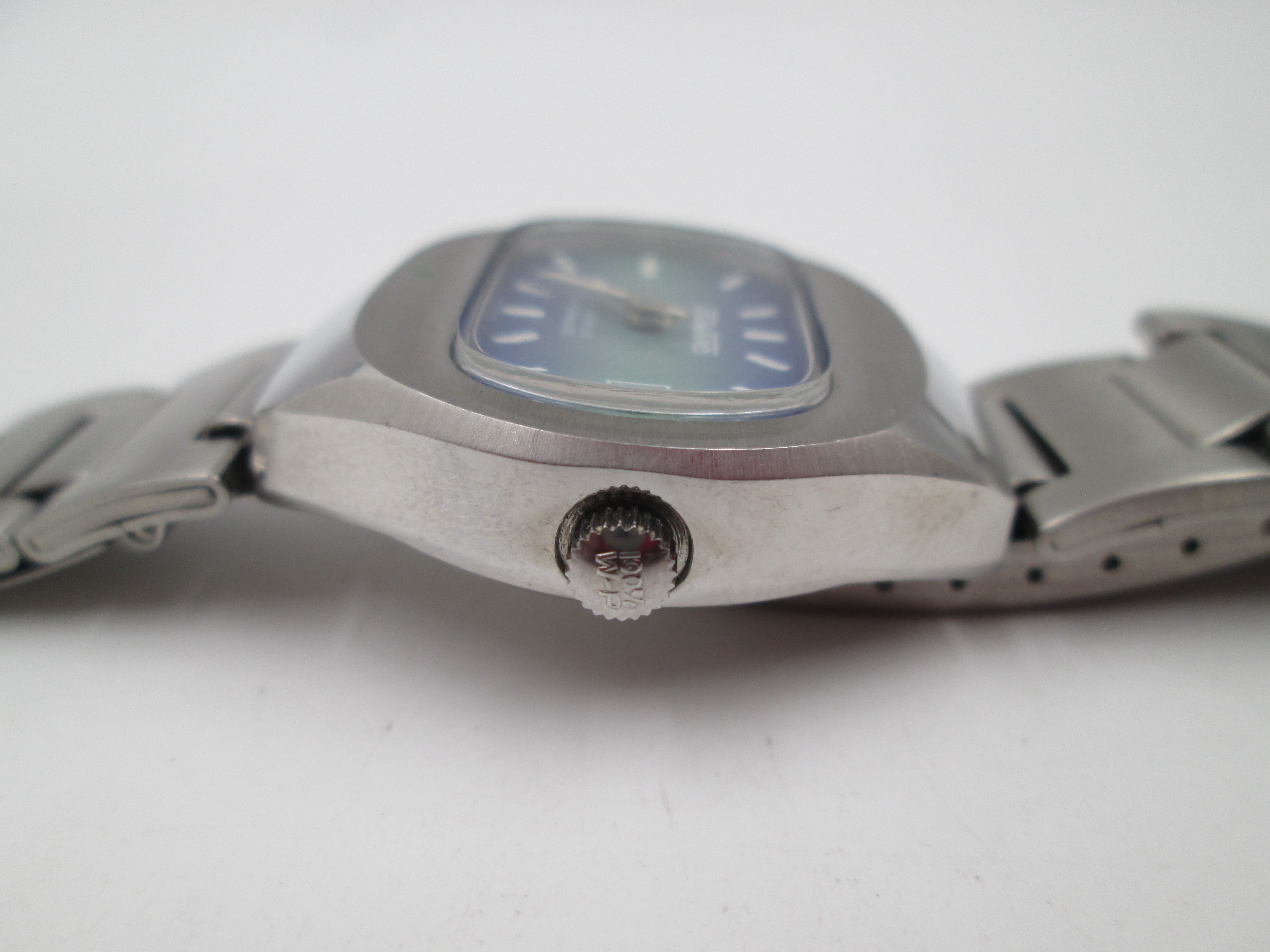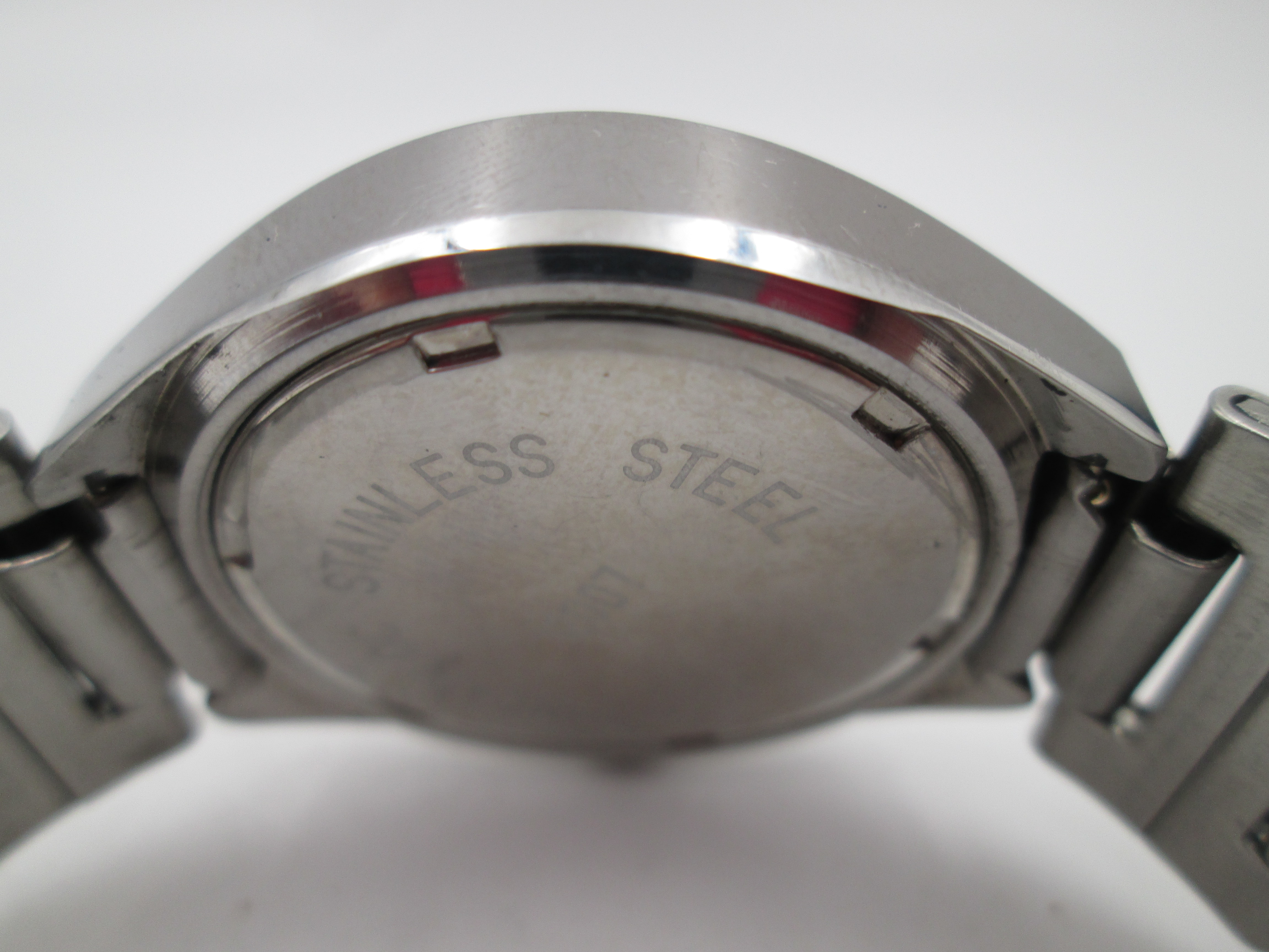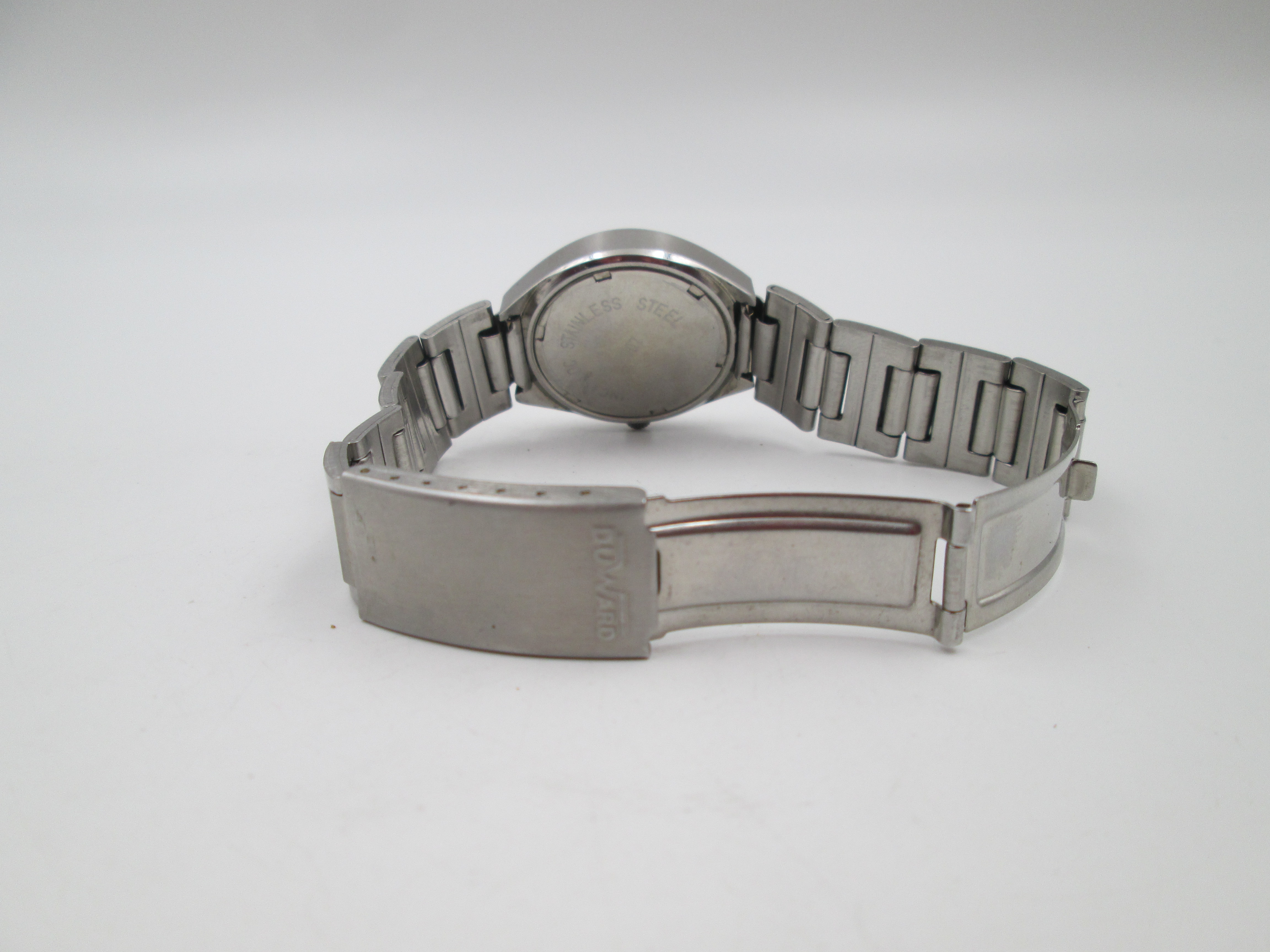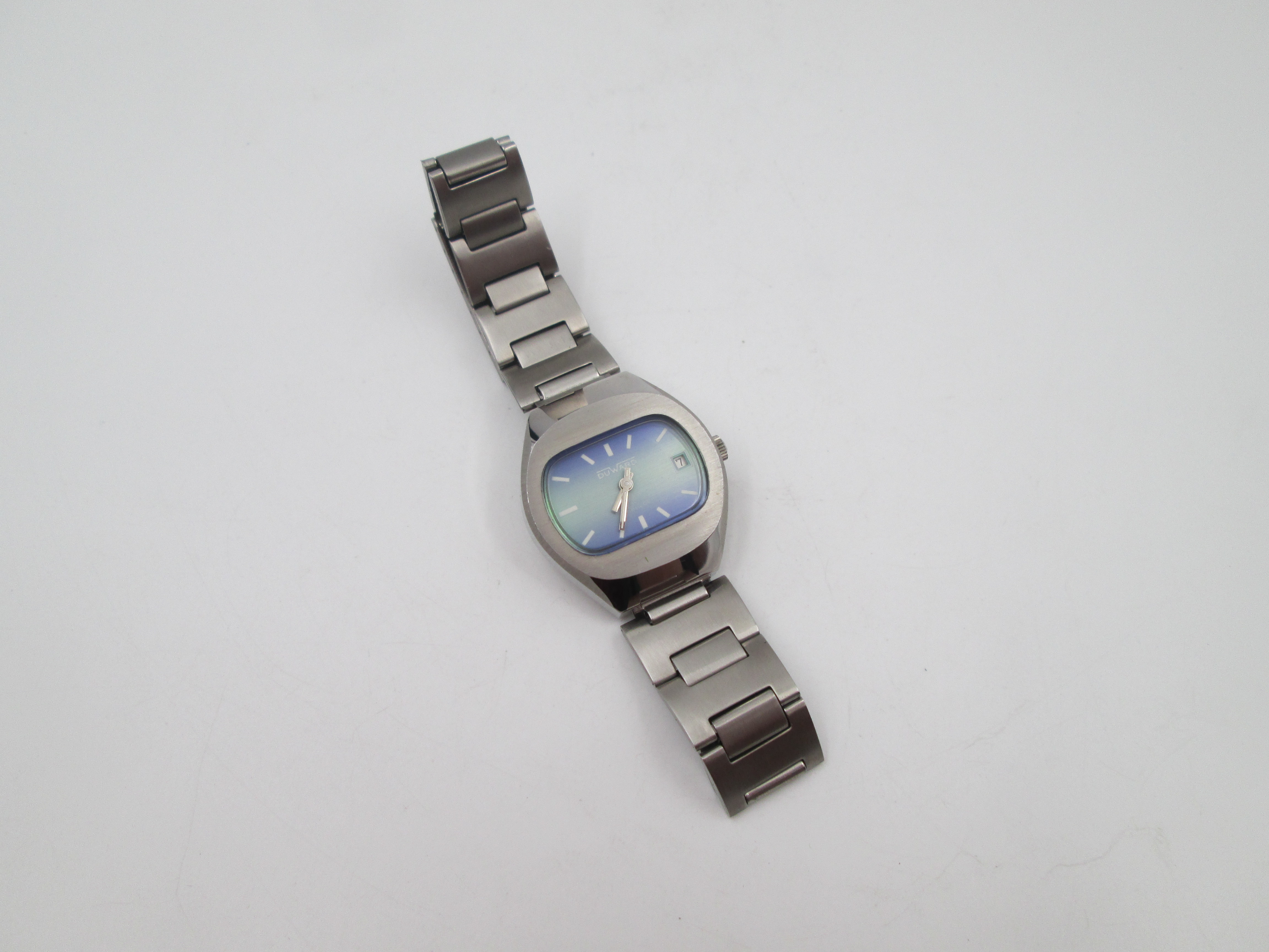 Duward women's watch. Stainless steel. Bitone dial. Calendar. Manual wind. Bracelet. 1970's