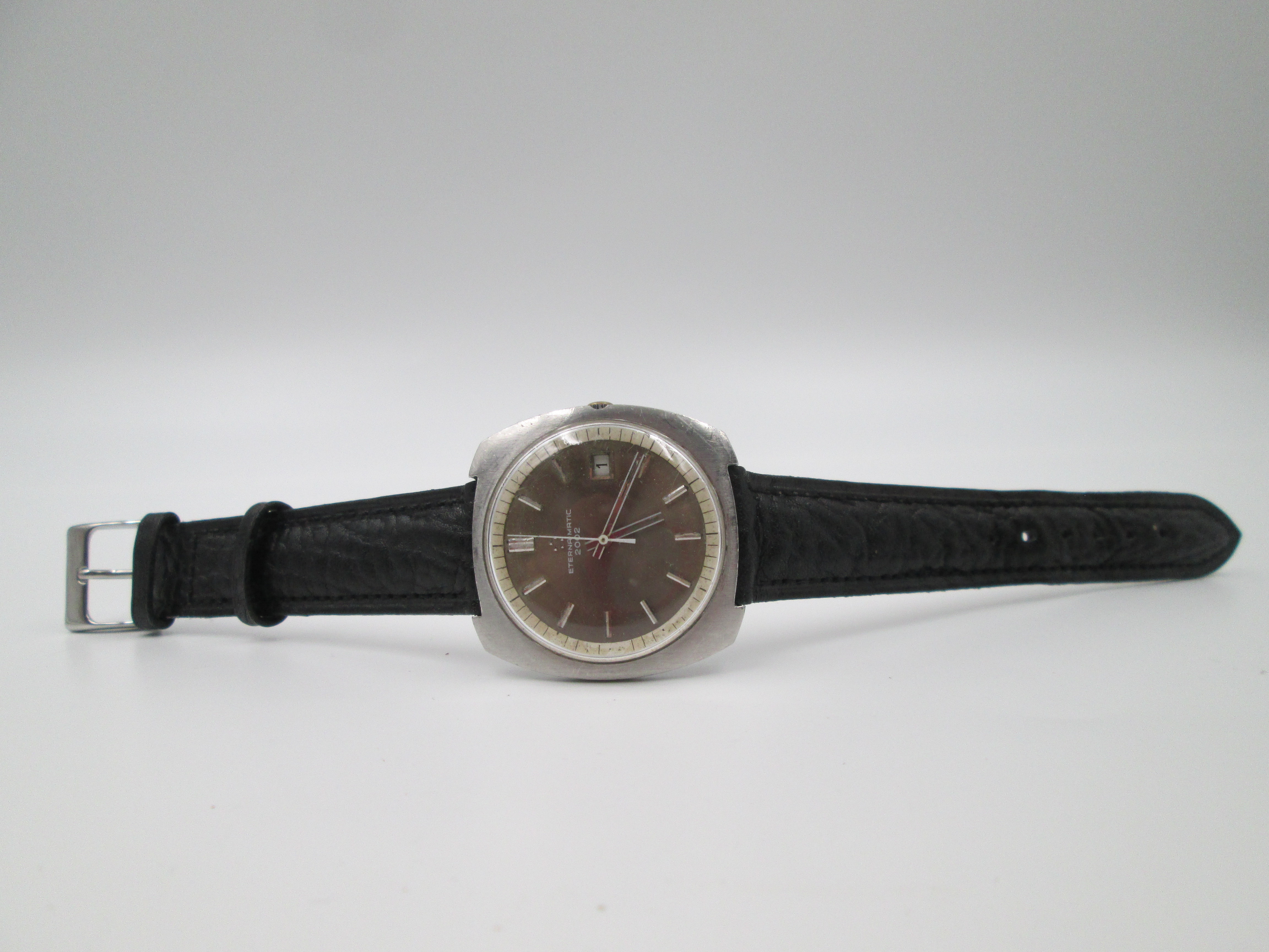 Eterna-Matic 2002. Automatic. Stainless steel. Grey dial. Leather strap. 1970's. Swiss
