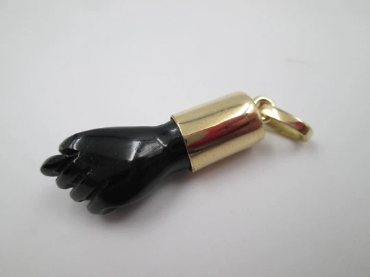 Figa / higa big pendant. 18k yellow gold and jet. Spanish regional amulet