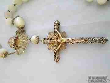 Filigree rosary. Nacre and silver vermeil. Cross openwork. Spain