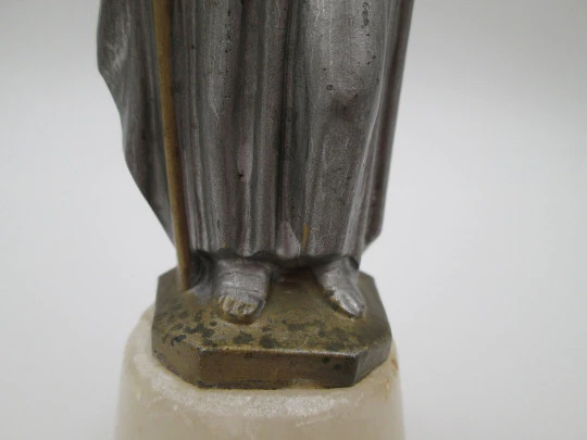 James Apostle Pilgrim sculpture. Calamine, golden details and marble. Spain. 1960's