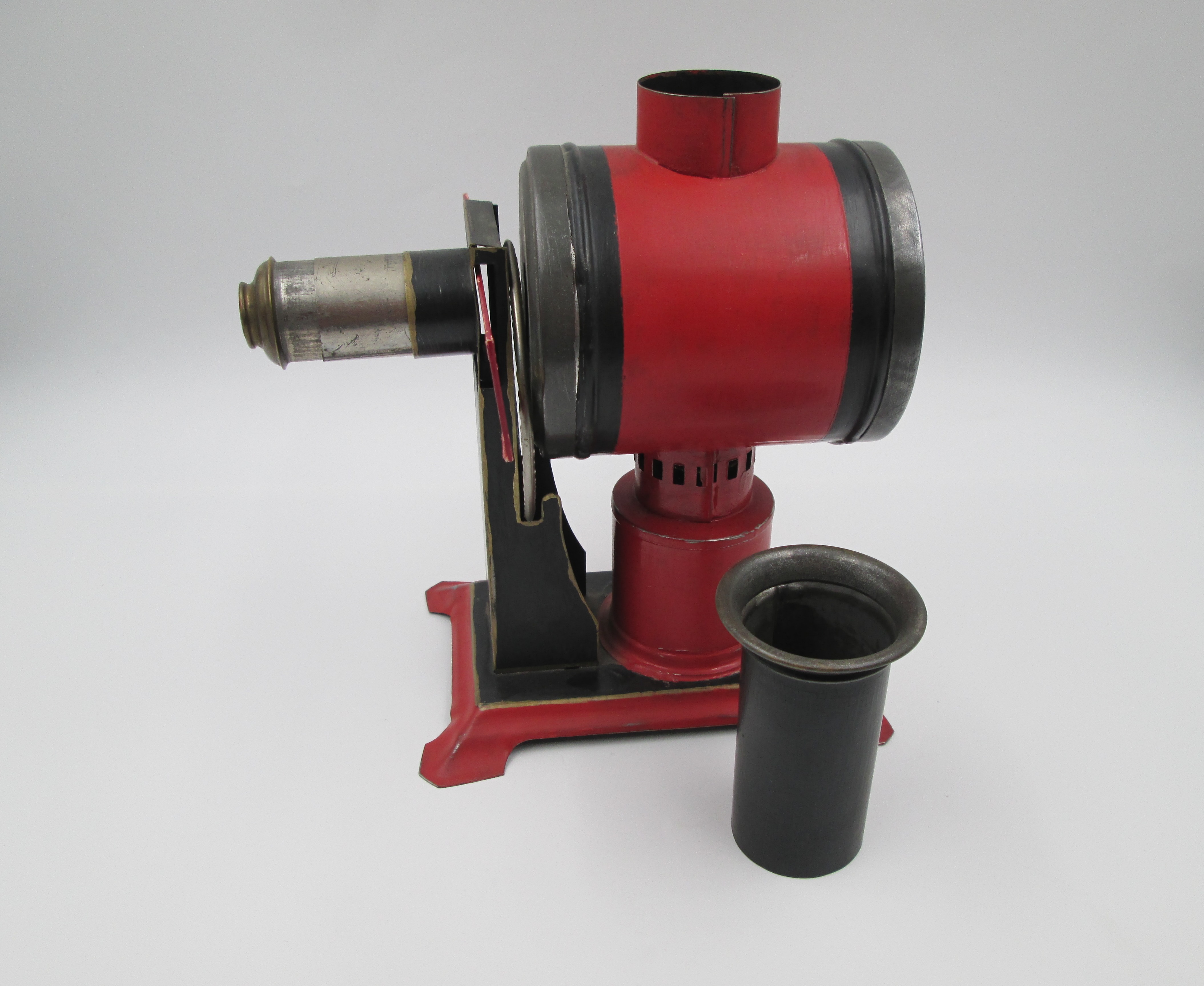 Painted and nickel tinplate. Red & black colour.