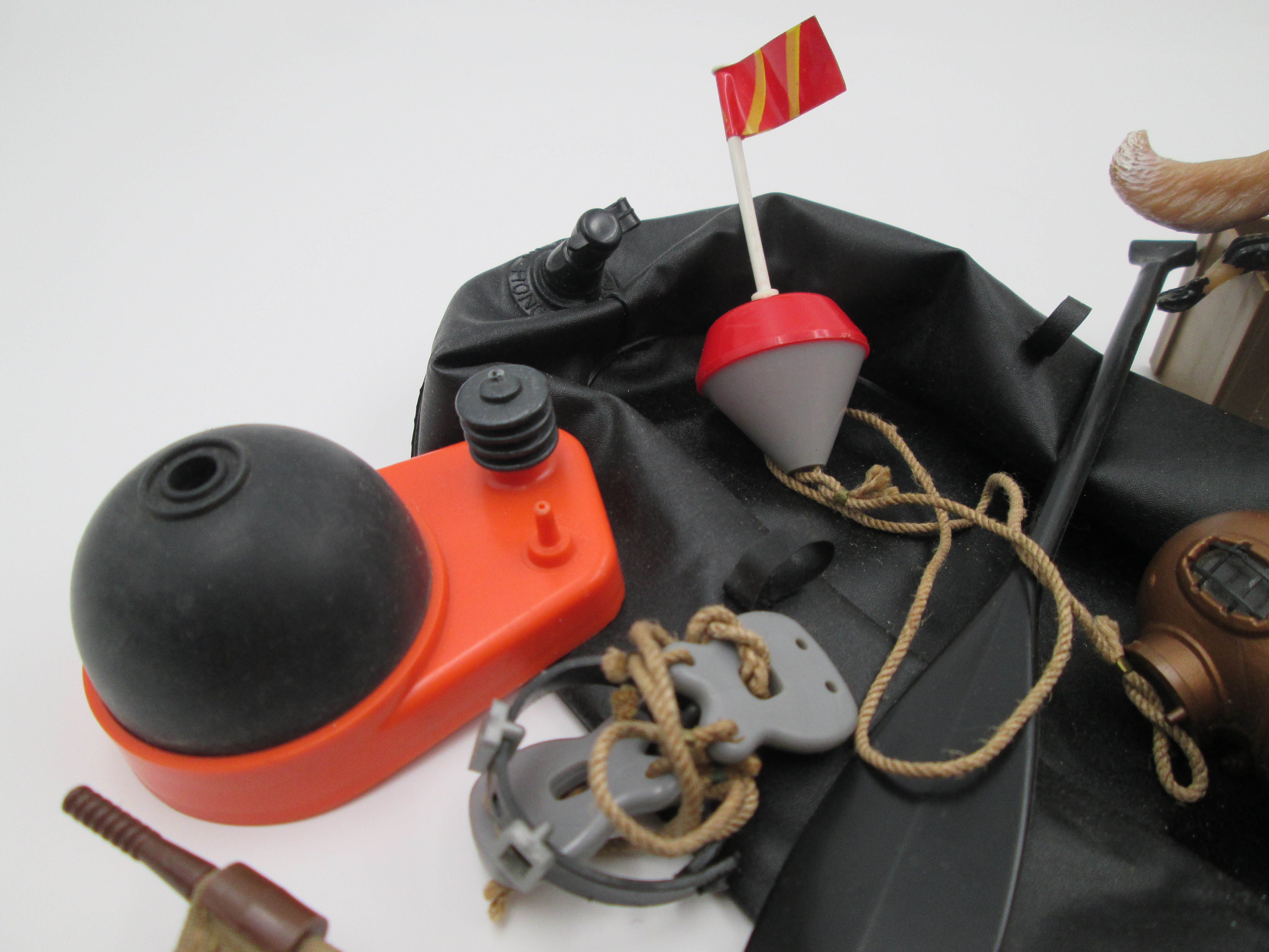 Stretcher, inflatable boat with oar and inflator, mortar, buoy, underwater rifle, projectiles, crutches, first aid kit, flag, helmet, caps, foxes, oxygen bottles, diving goggles, transmitter, lantern, pistol, box and belt.