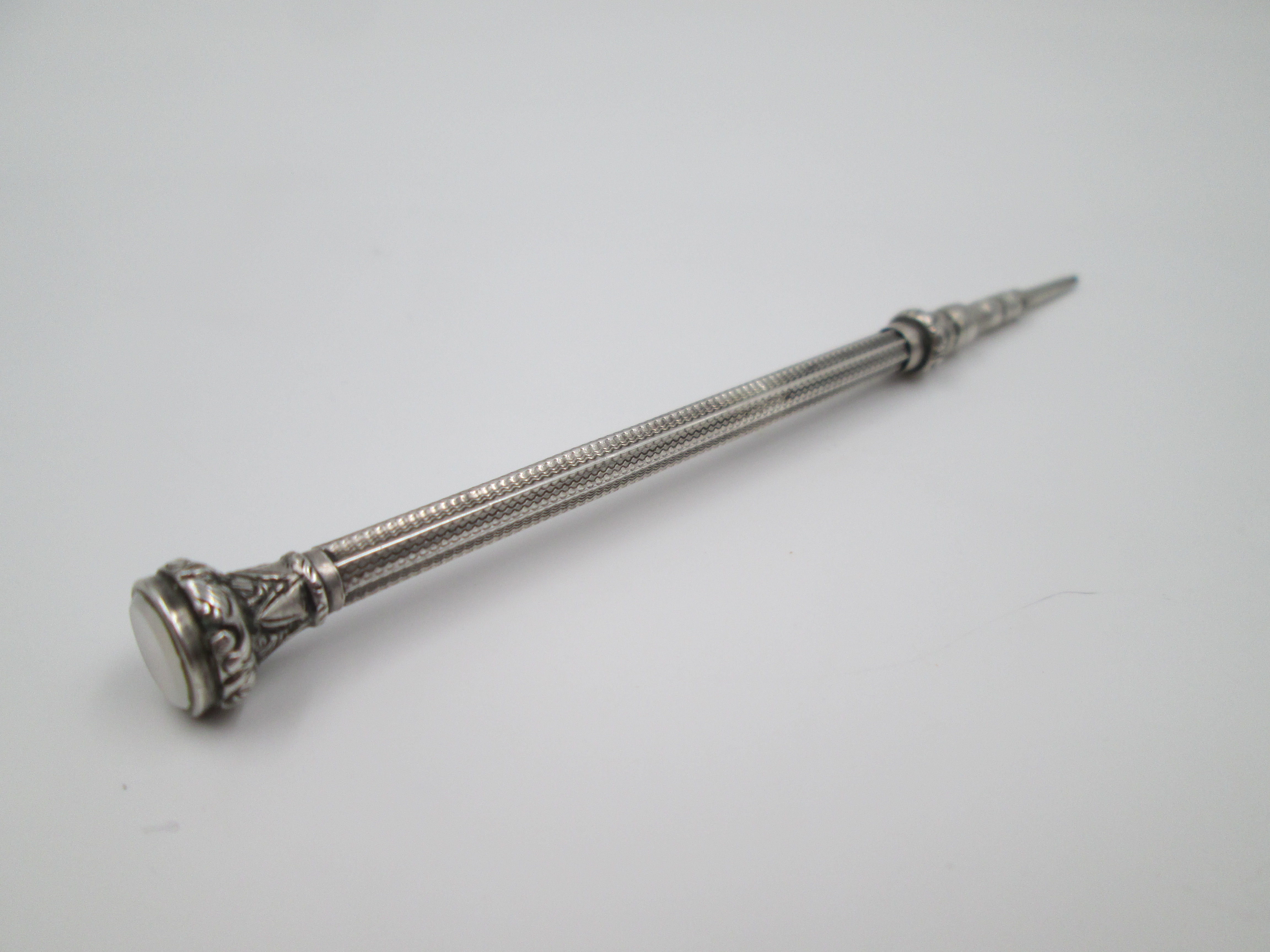 Mechanical propelling pencil. Chiseled sterling silver & nacre. 1900's