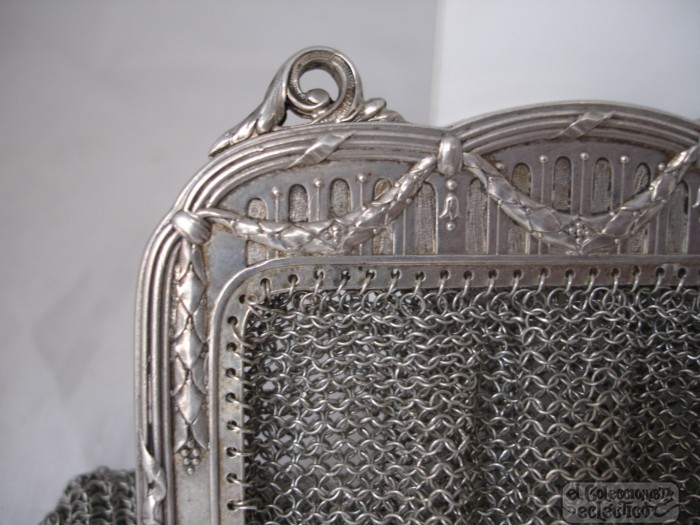 Mesh bag. Silver 800 thousands. Garlands. France. Circa: 1910-20
