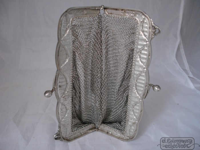 Antique jewelry. Old mesh silver bags. Women's vintage accessories.