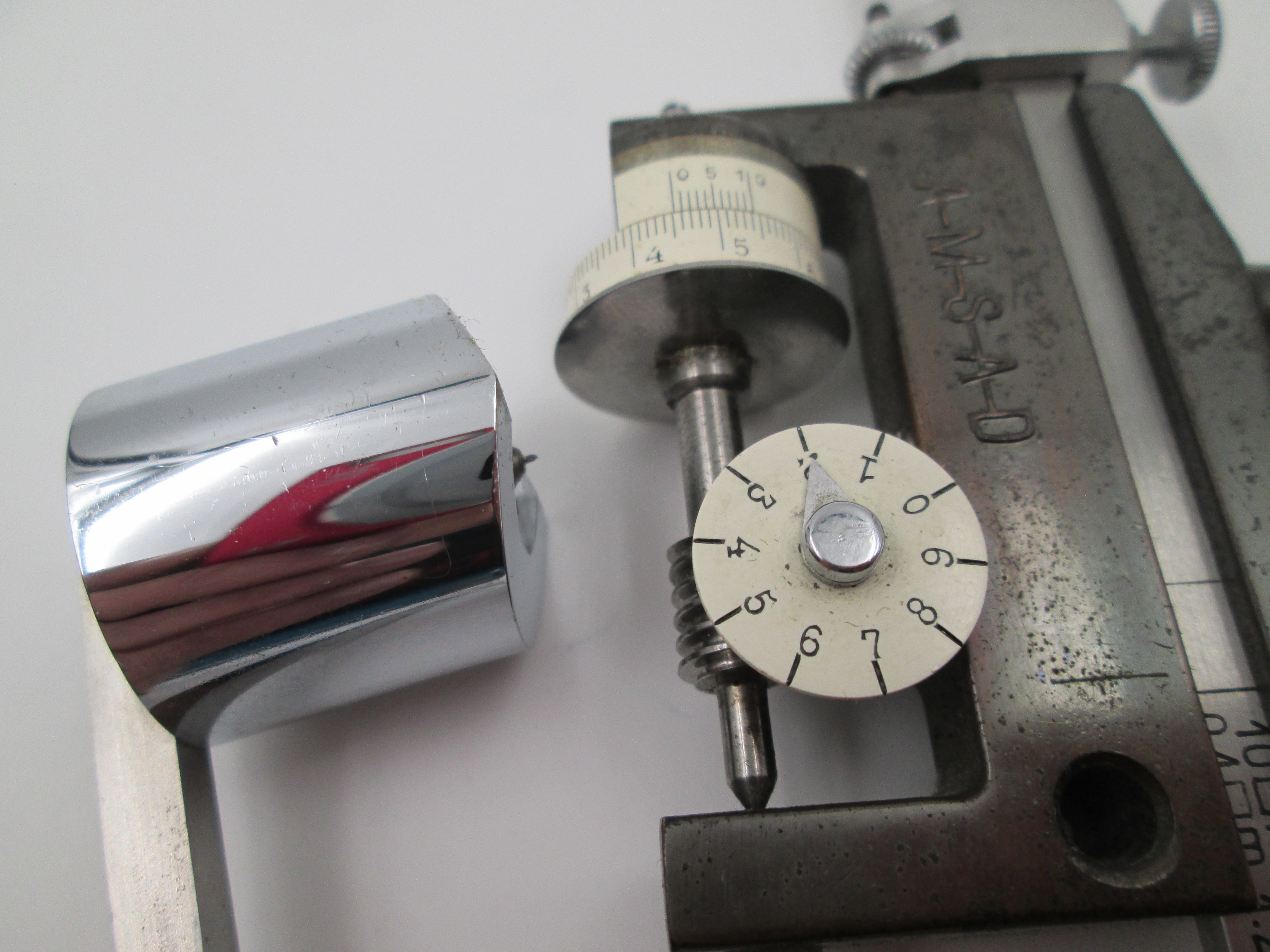 Measure tool with scale and calipers.