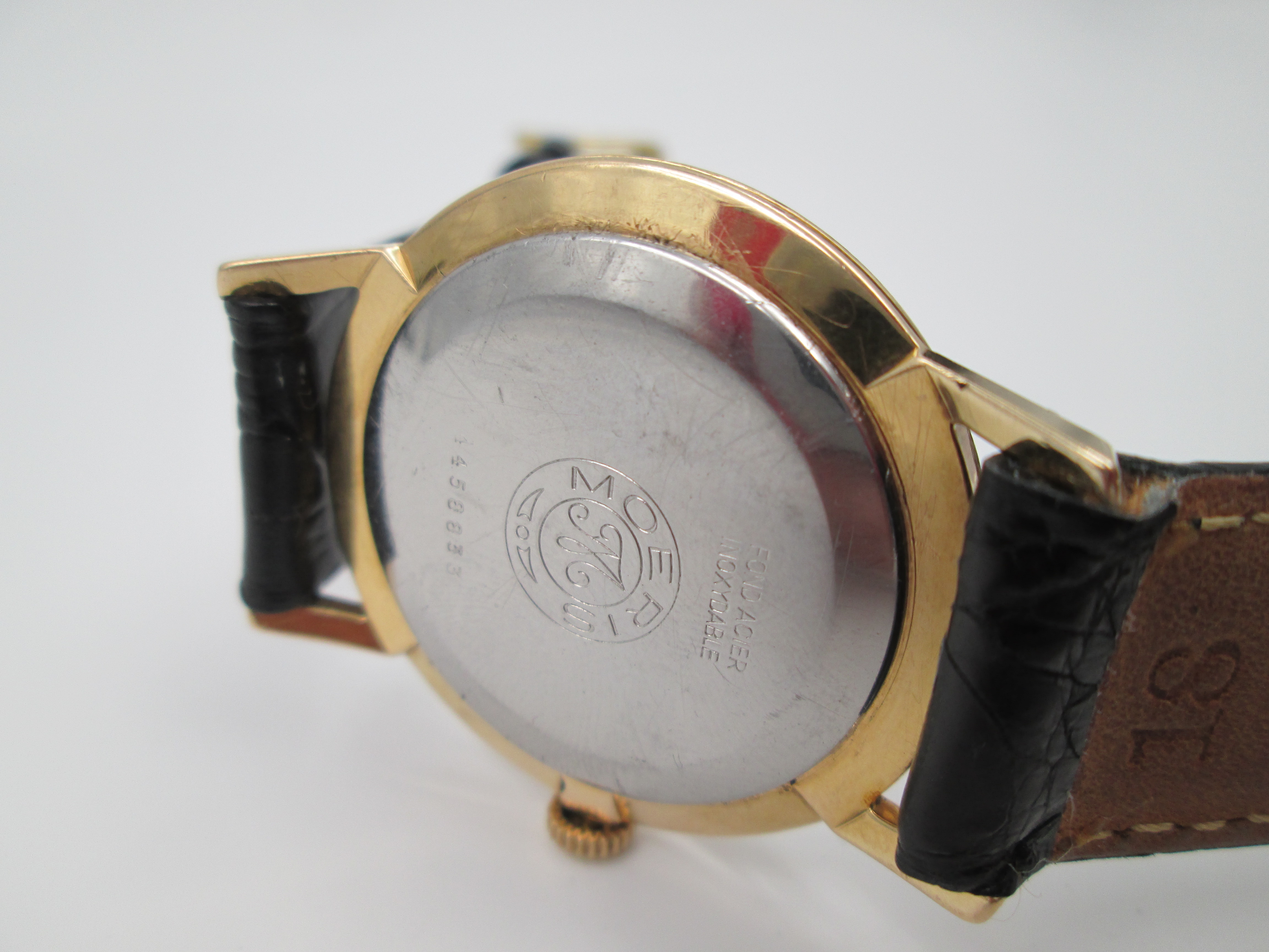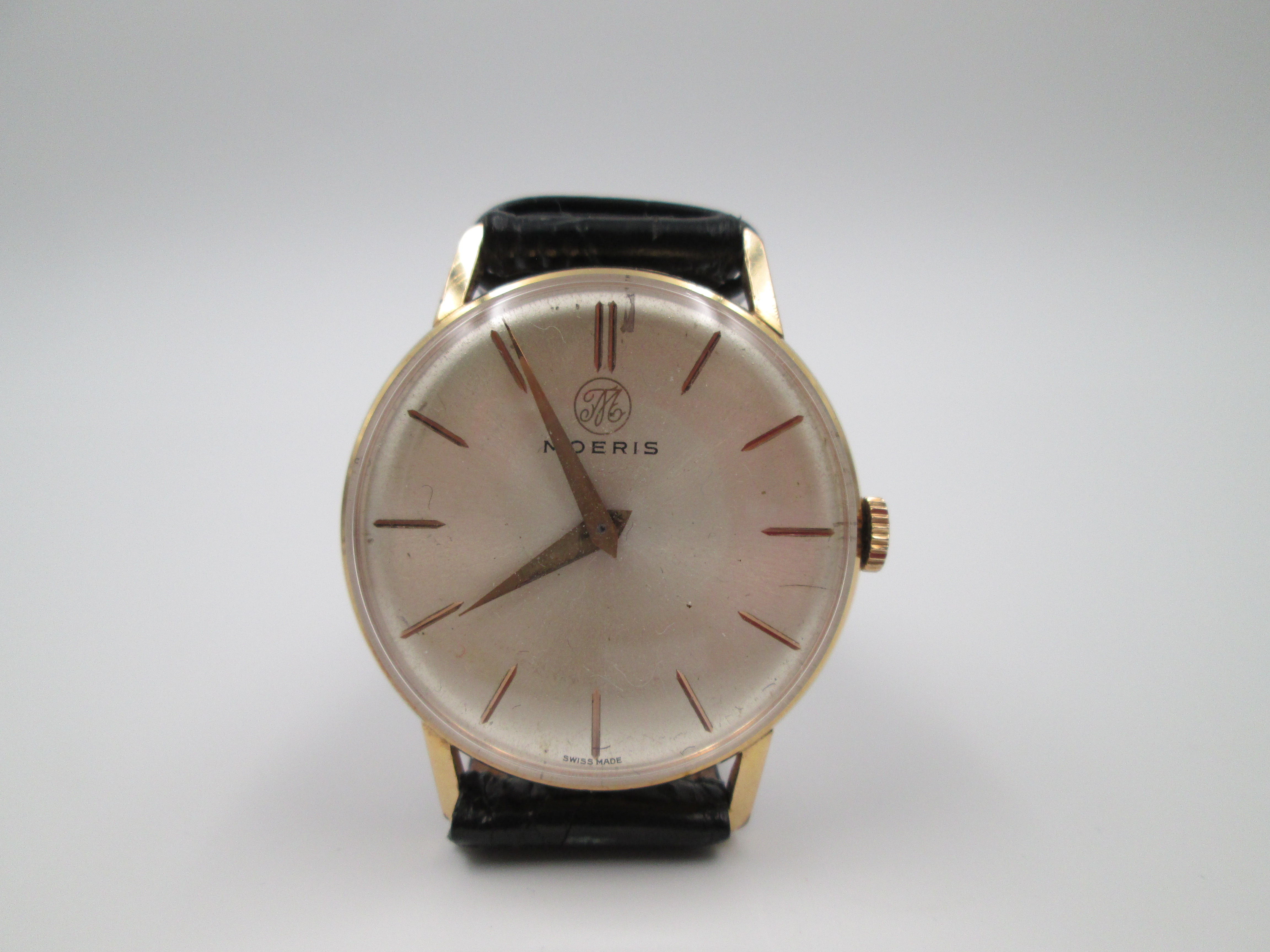 Moeris. Manual wind. 1960's. Steel & gold plated. Swiss. Leather strap
