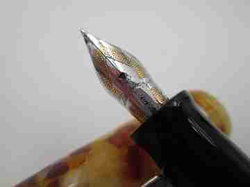 Montegrappa Elmo Bassano. Brown & beige celluloid. Sterling silver details. 18k gold nib