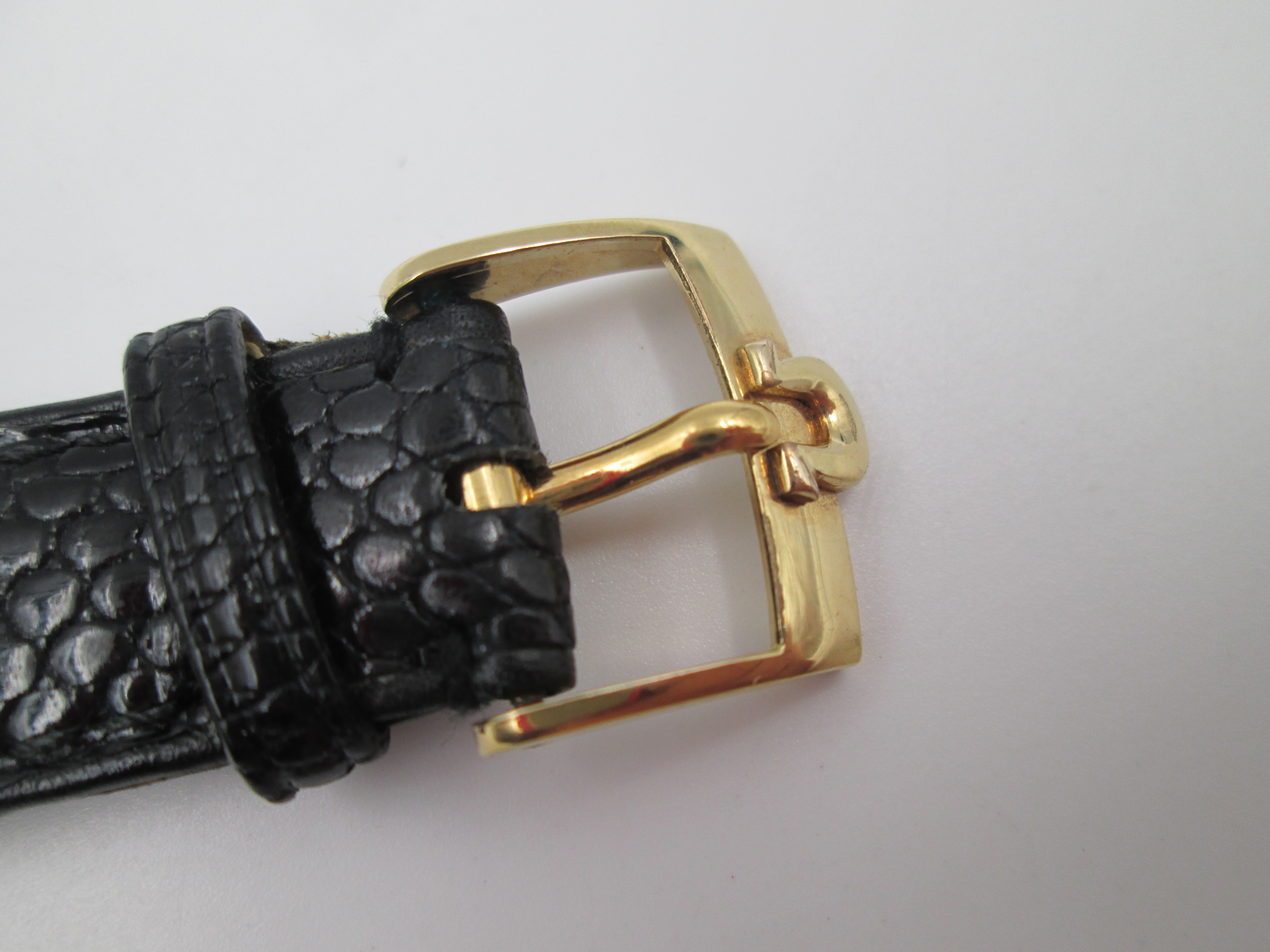 Black leather strap with original golden buckle. Omega red & white leather box.