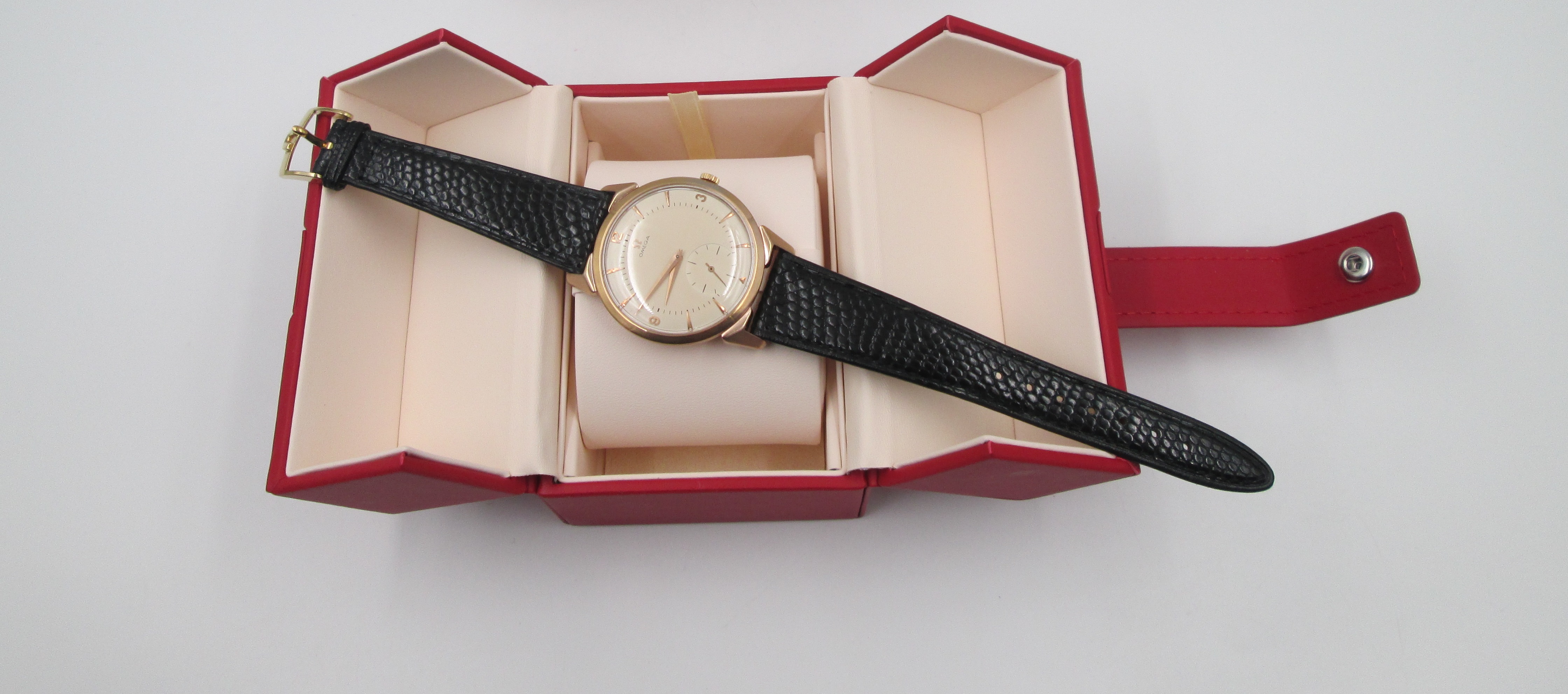 Omega Jumbo Calatrava men's watch. 80 microns pink gold plated. Manual wind. 1950's