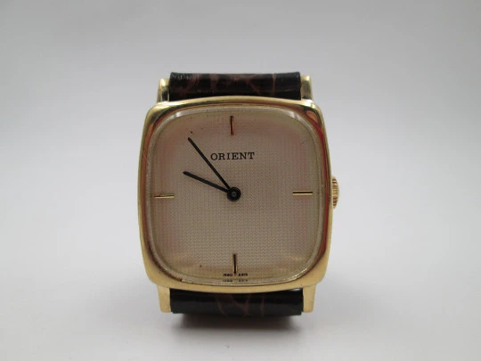 Orient women's dress watch. Gold plated and stainless steel. Manual wind. 1980's. Japan