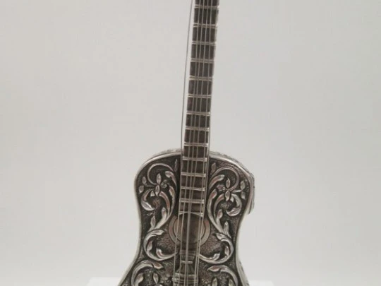Ornate desk box. Miniature guitar. 925 sterling silver & vermeil. 1980's