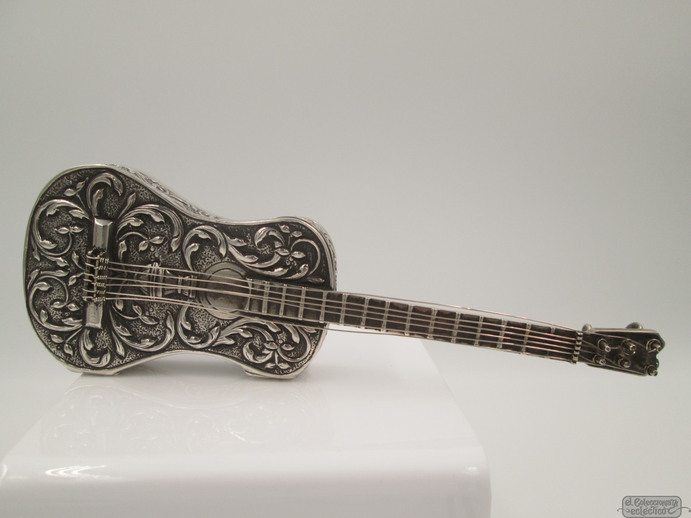 Ornate desk box. Miniature guitar. 925 sterling silver & vermeil. 1980's