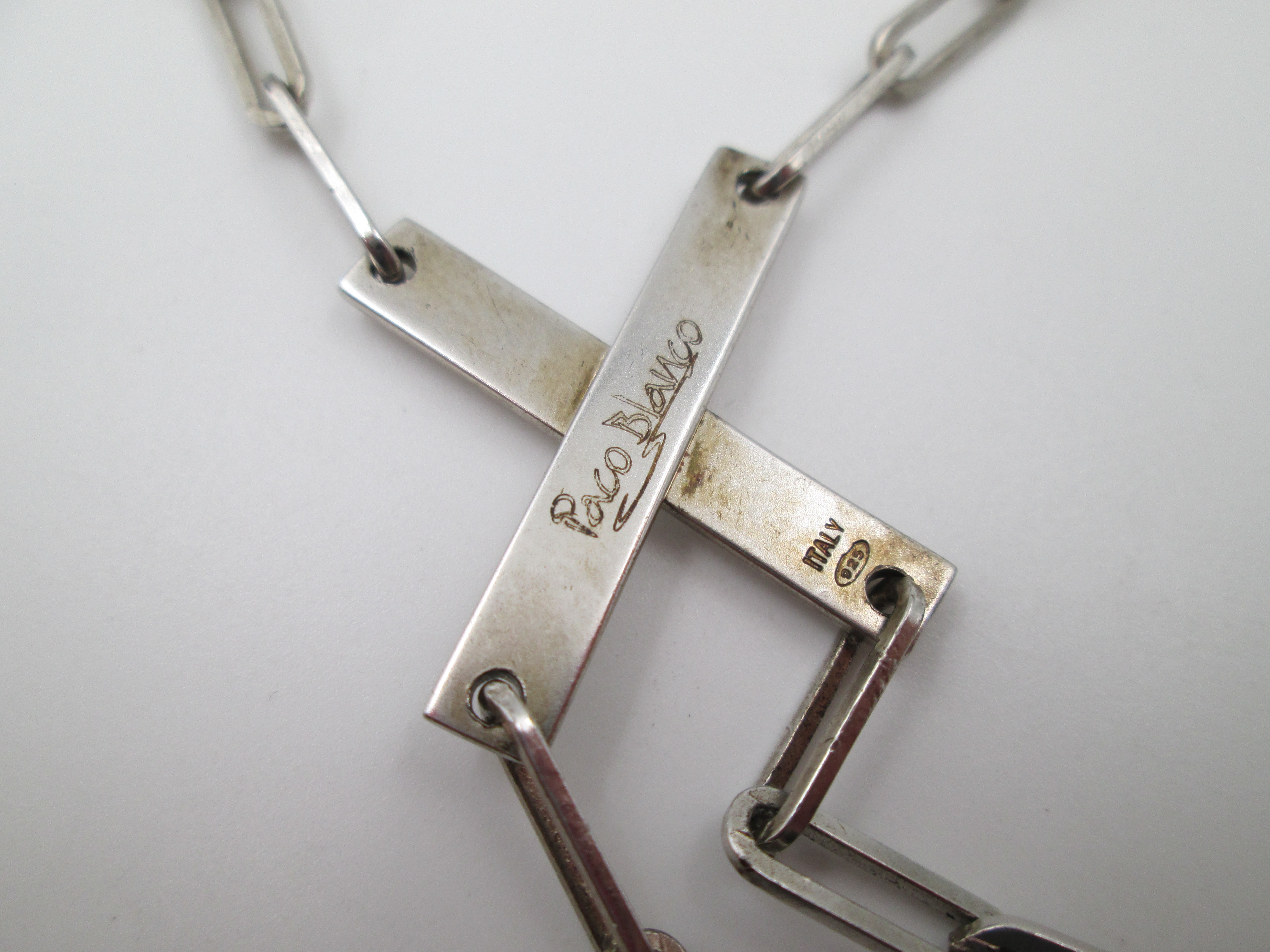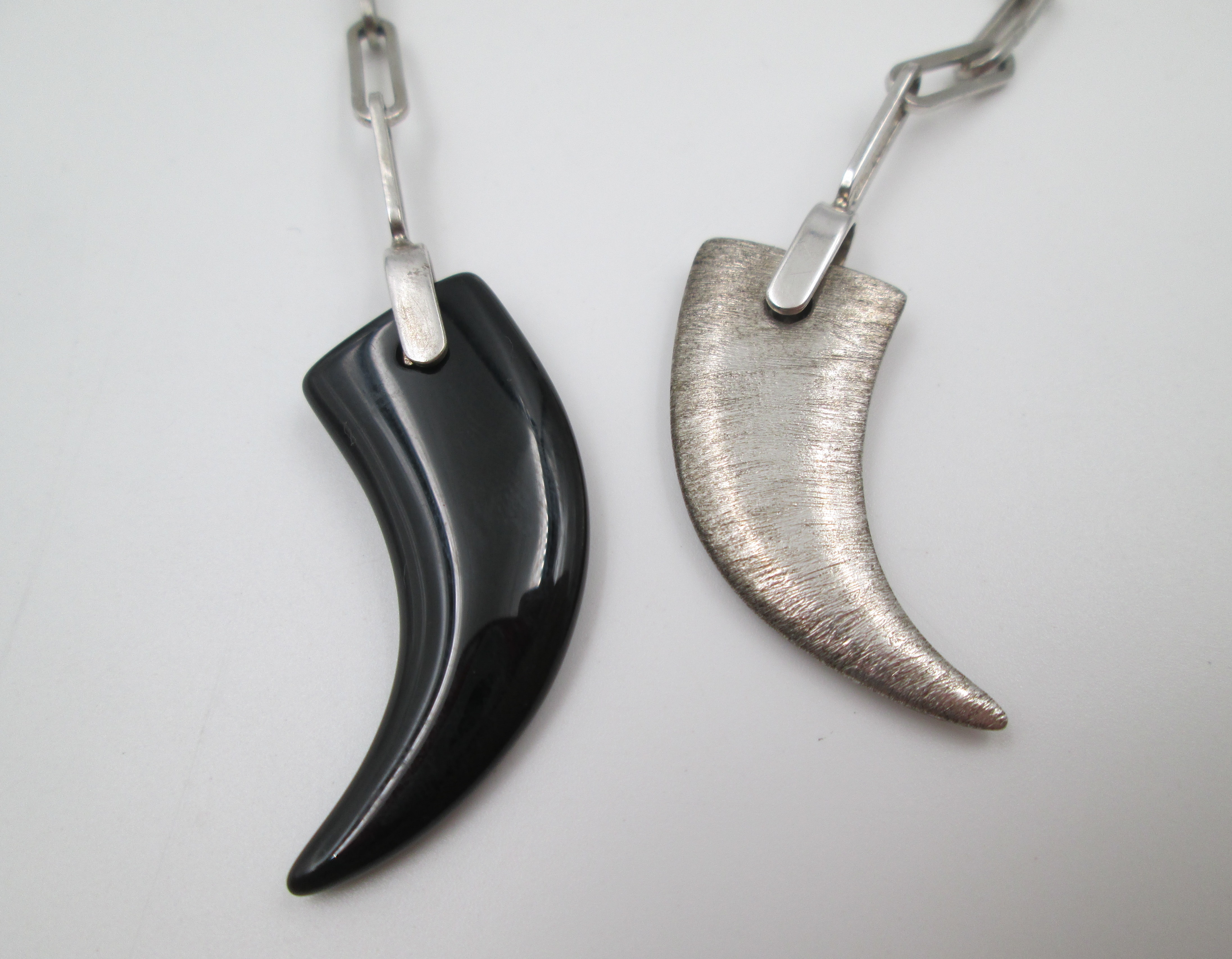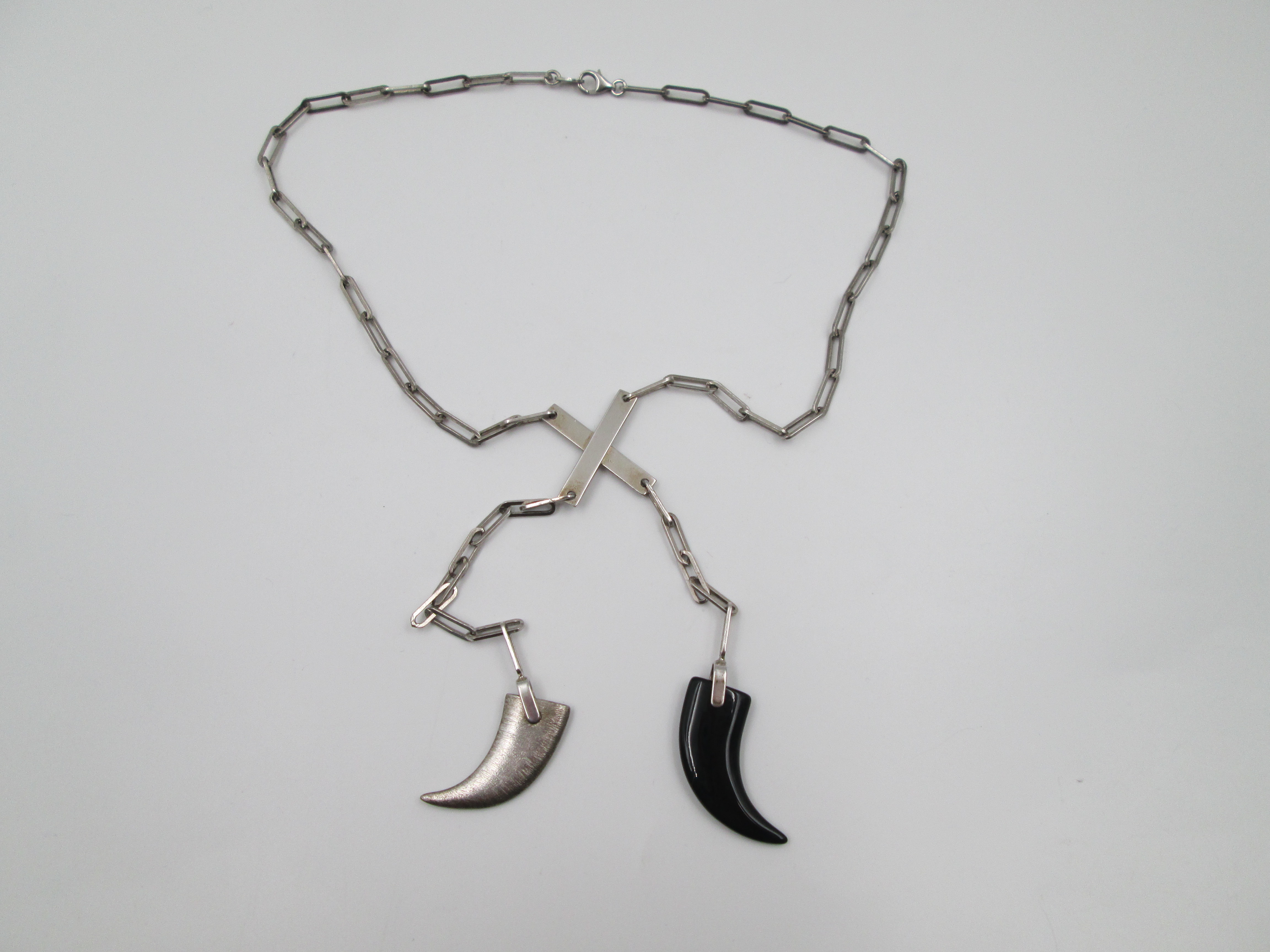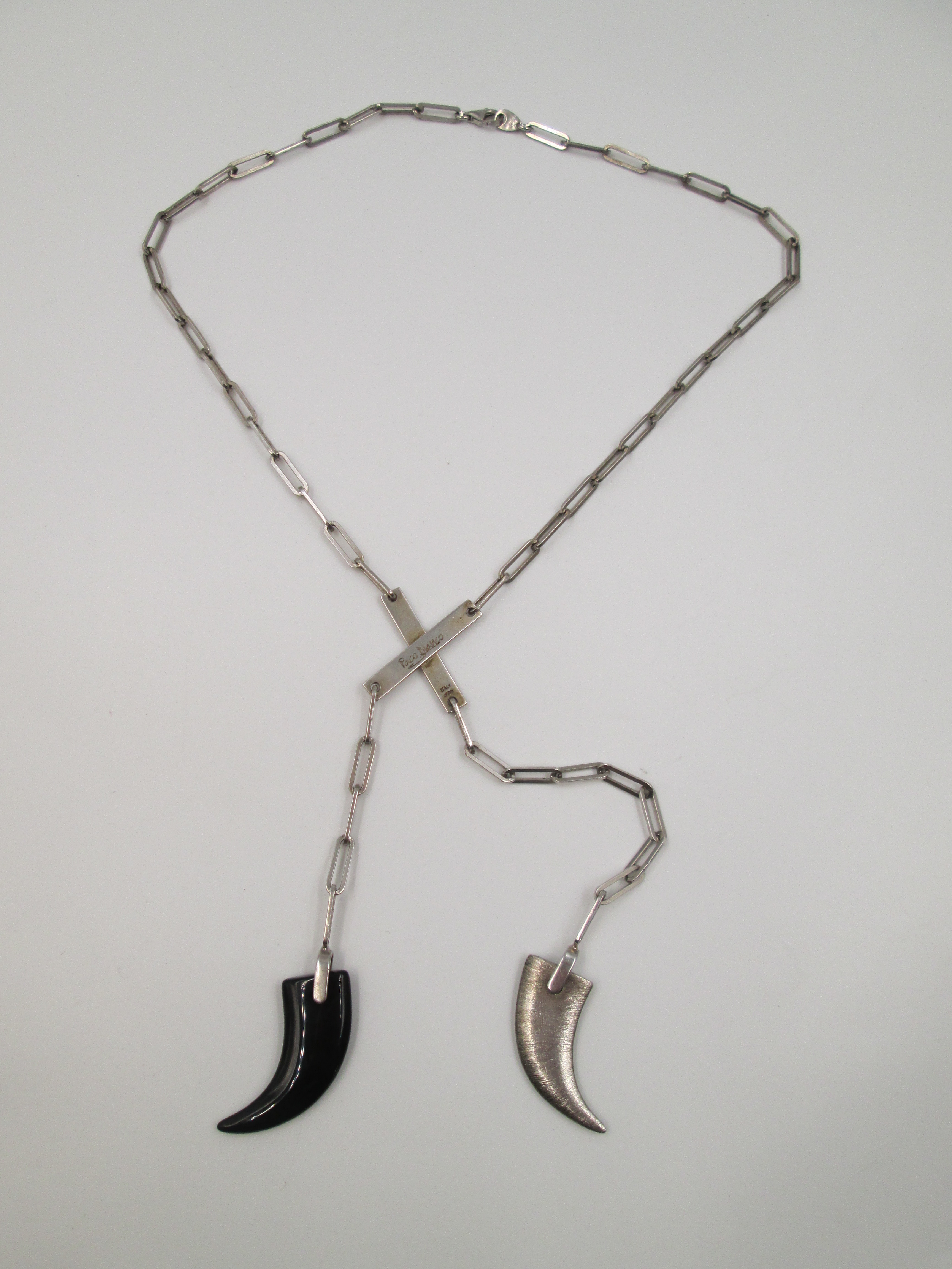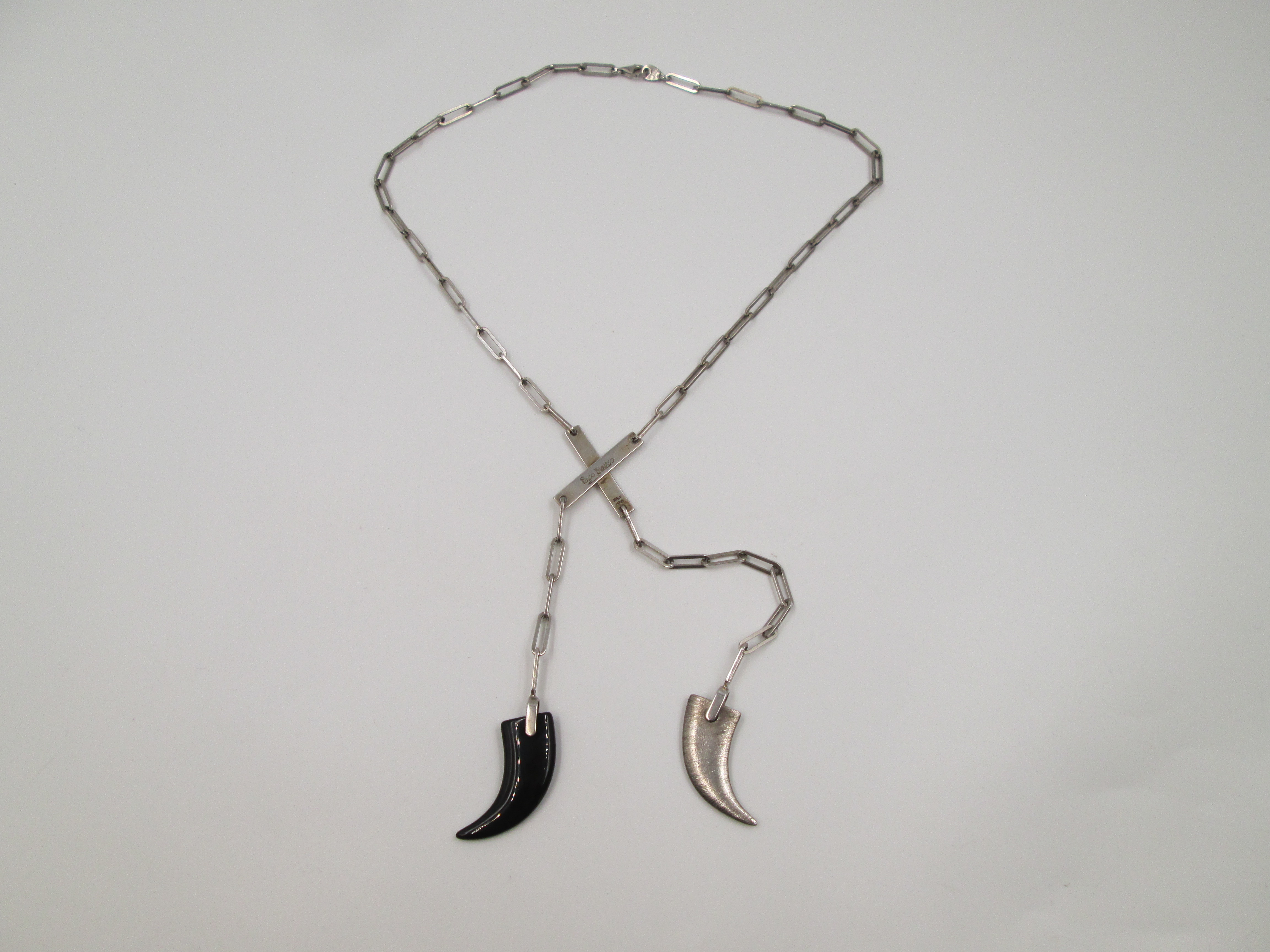 Paco Blanco unisex necklace. 925 sterling silver & black enamel. Chain and horns. Italy