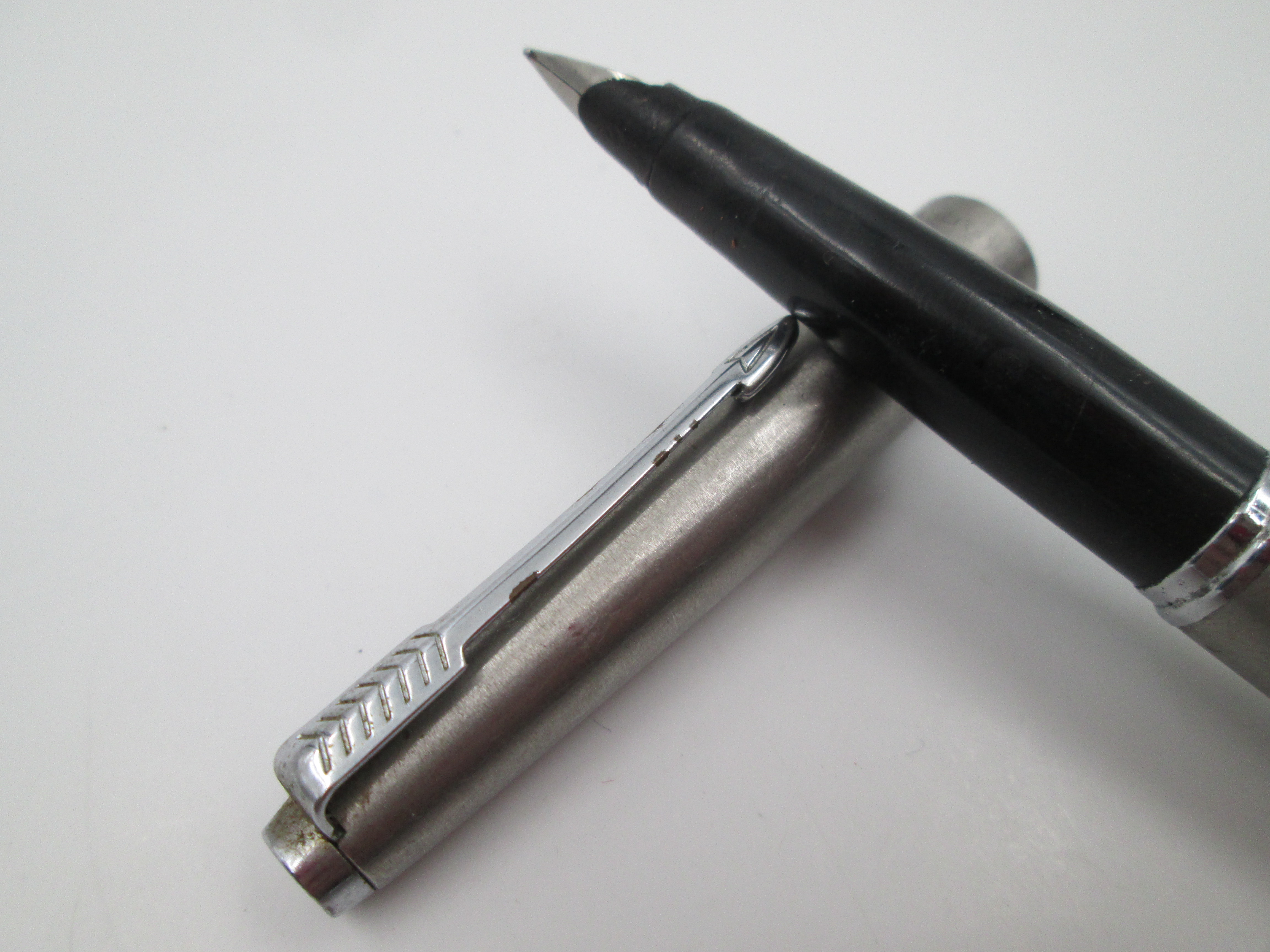 Parker 45 Flighter. Stainless steel and black plastic. 1970's. Aerometric system. Spain