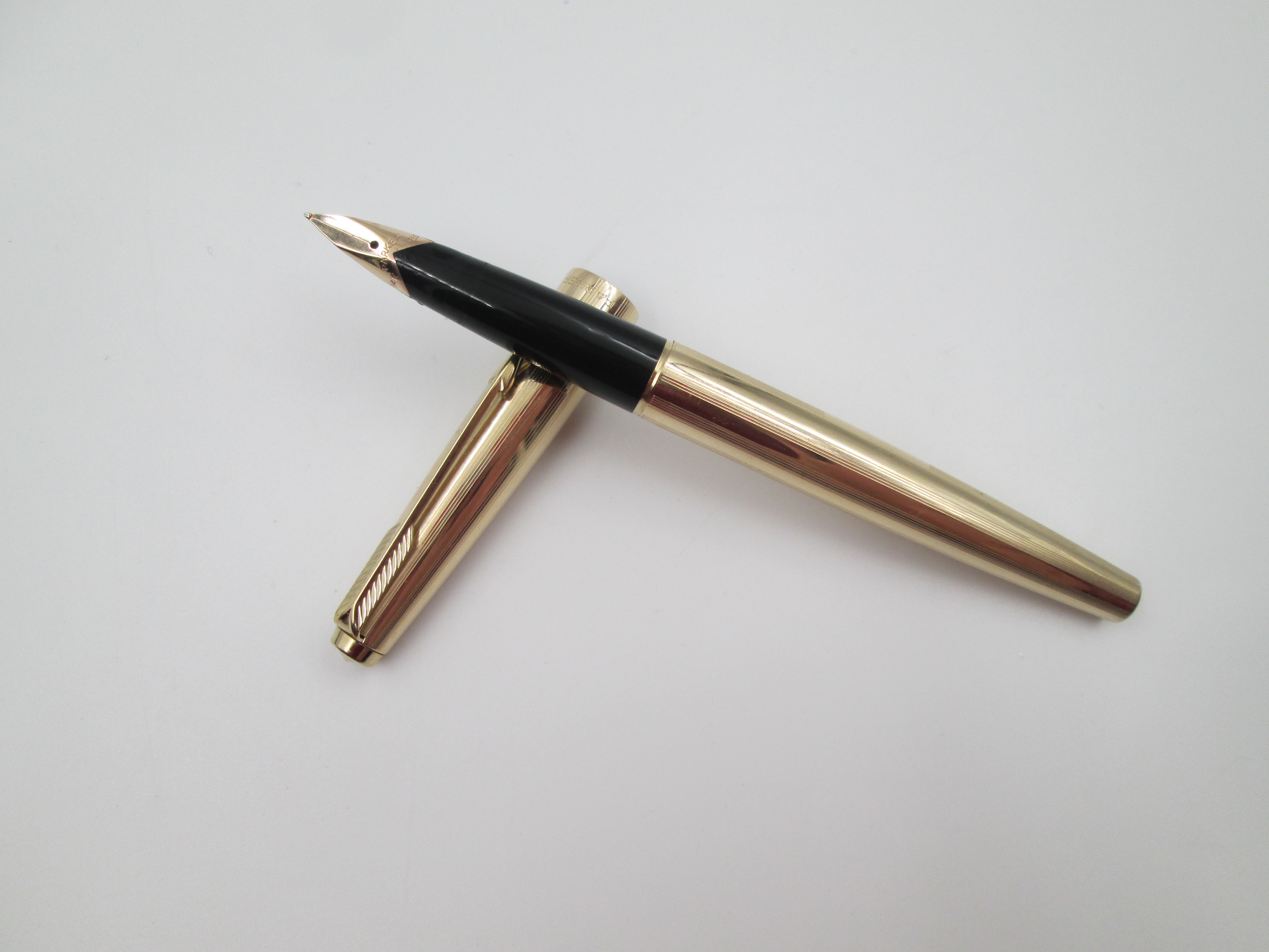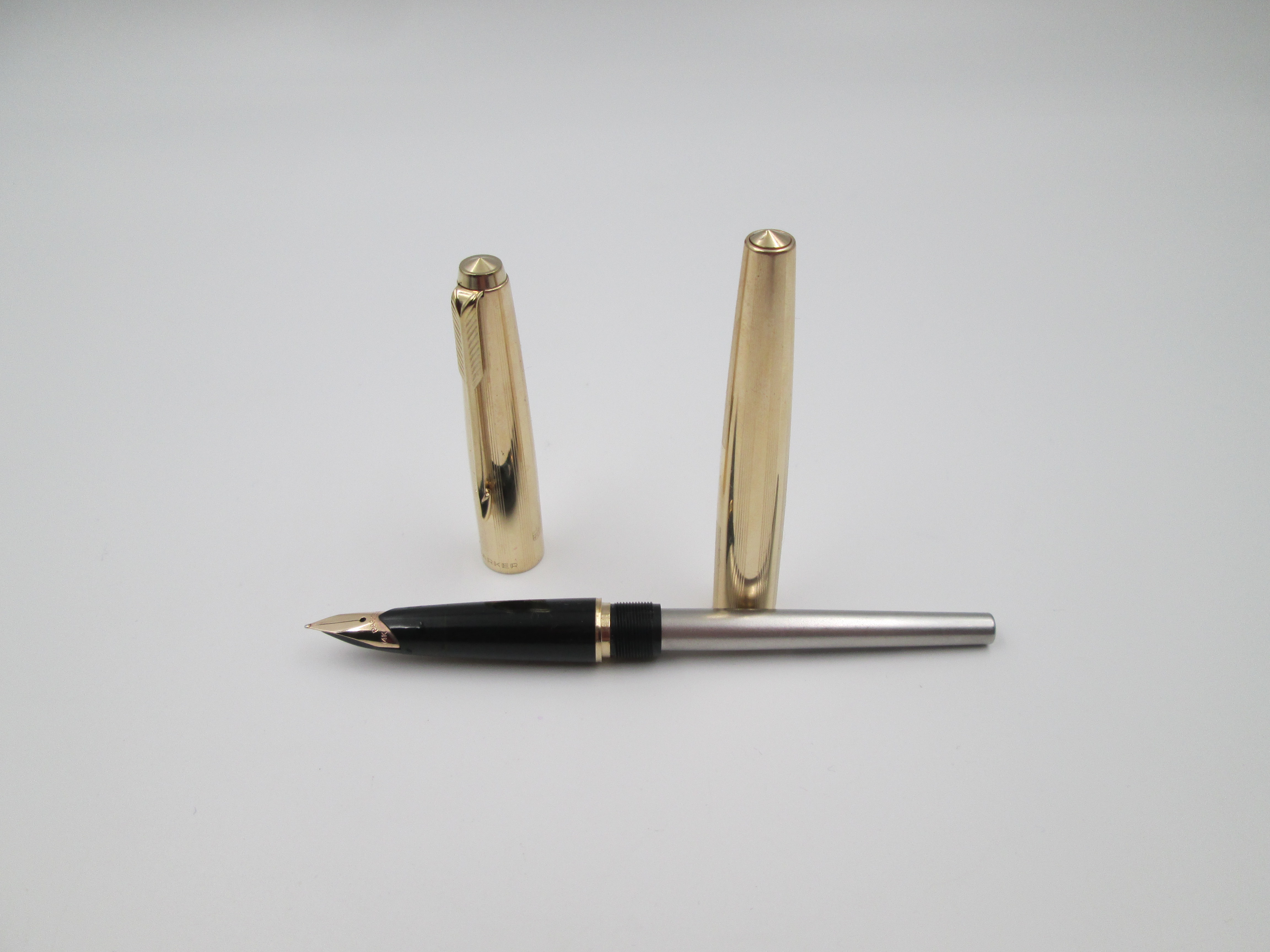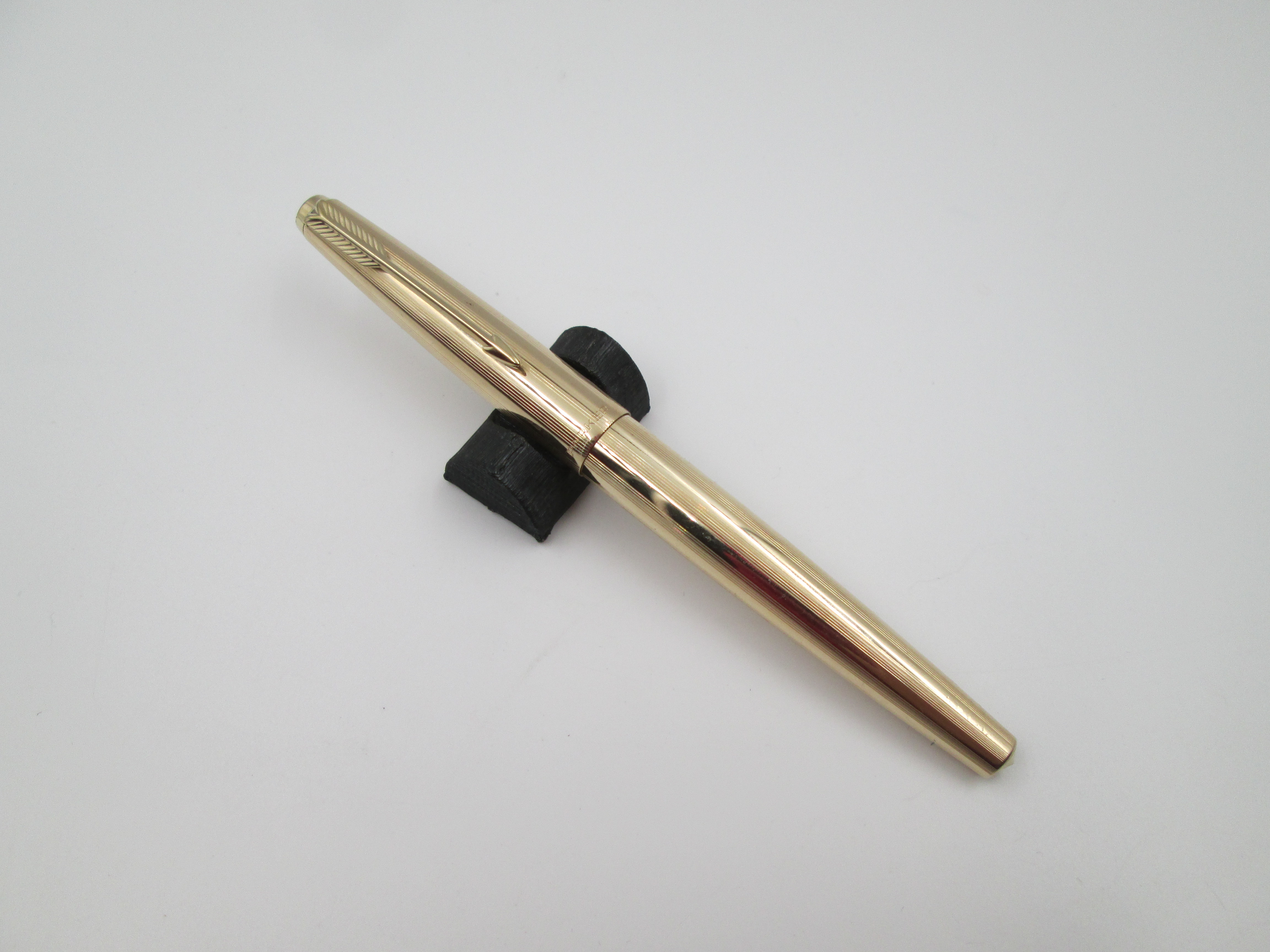 Parker 65 Custom Insignia fountain pen. 12 karat gold plated. United Kingdom. 1960's