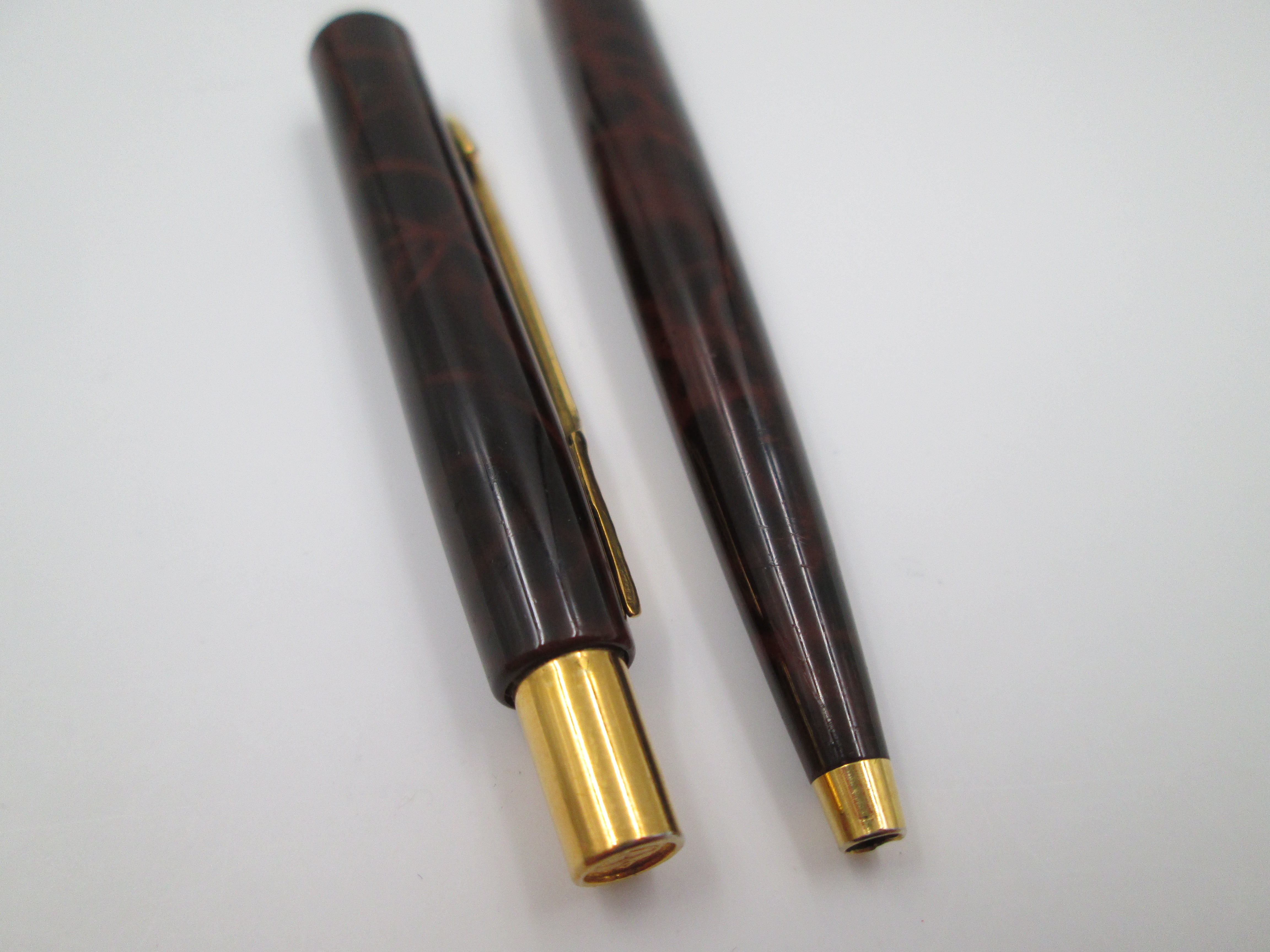 Parker Classic 180 Thuya ballpoint pen. Mottled brown lacquer and gold plated