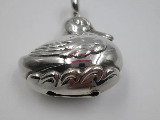 Pedro Duran baby rattle. 925 sterling silver. Duck figure. Ring. 1980's. Spain