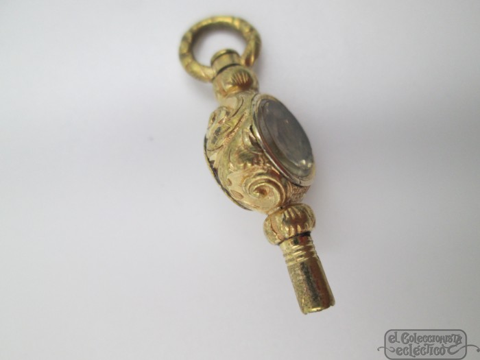 Pocket watch key. Gold plated. 19th century. White stone & champagne glass