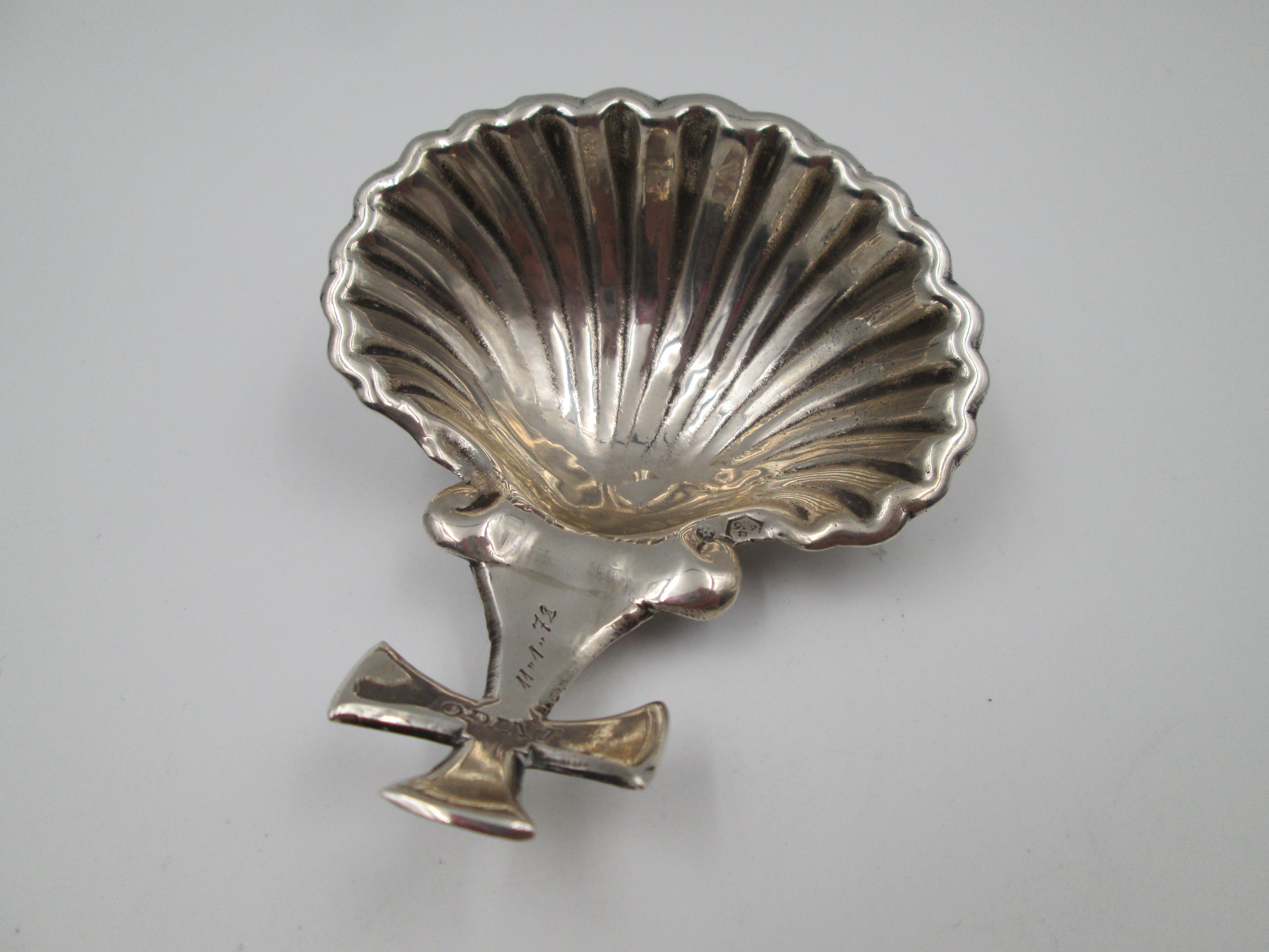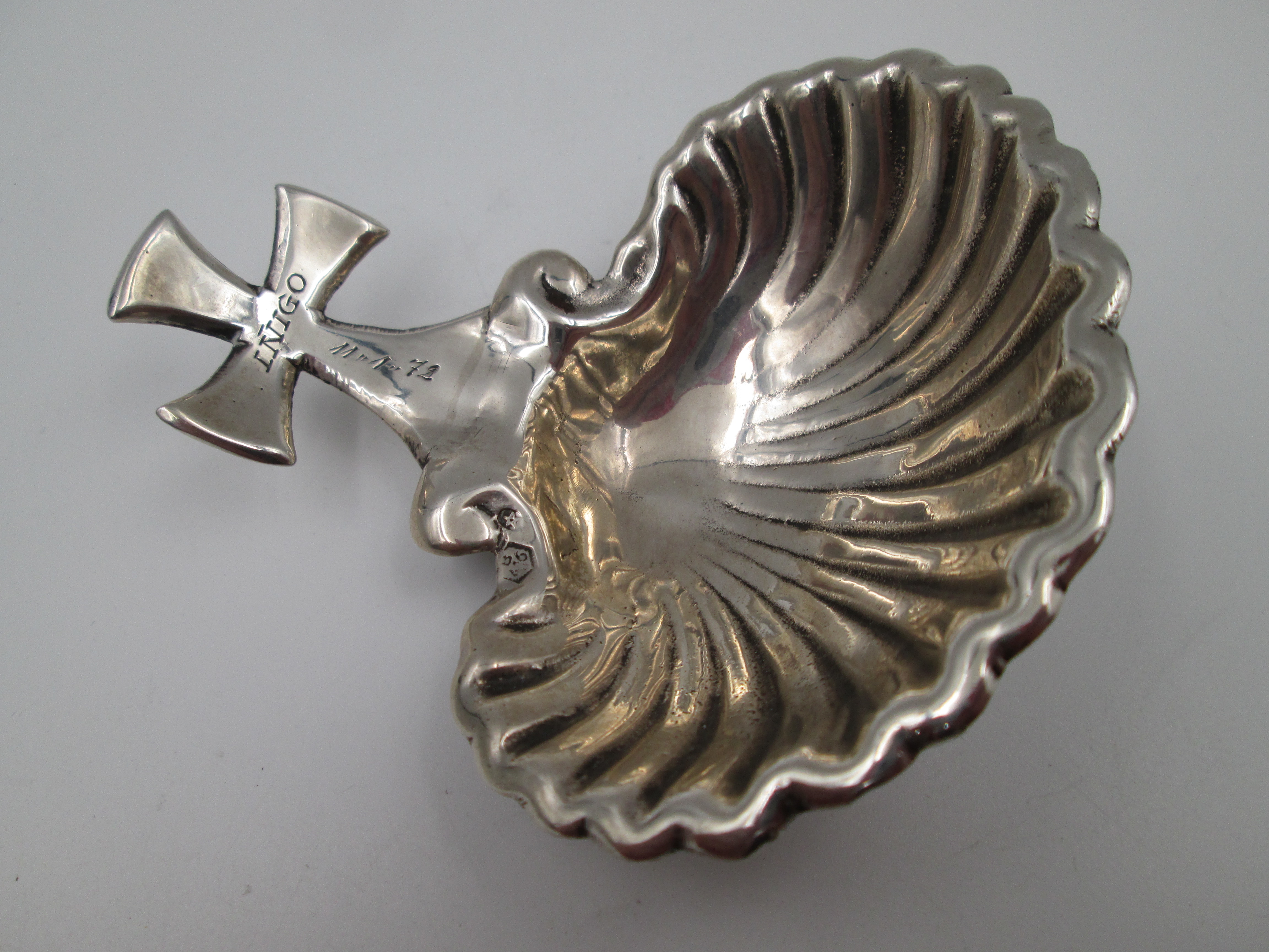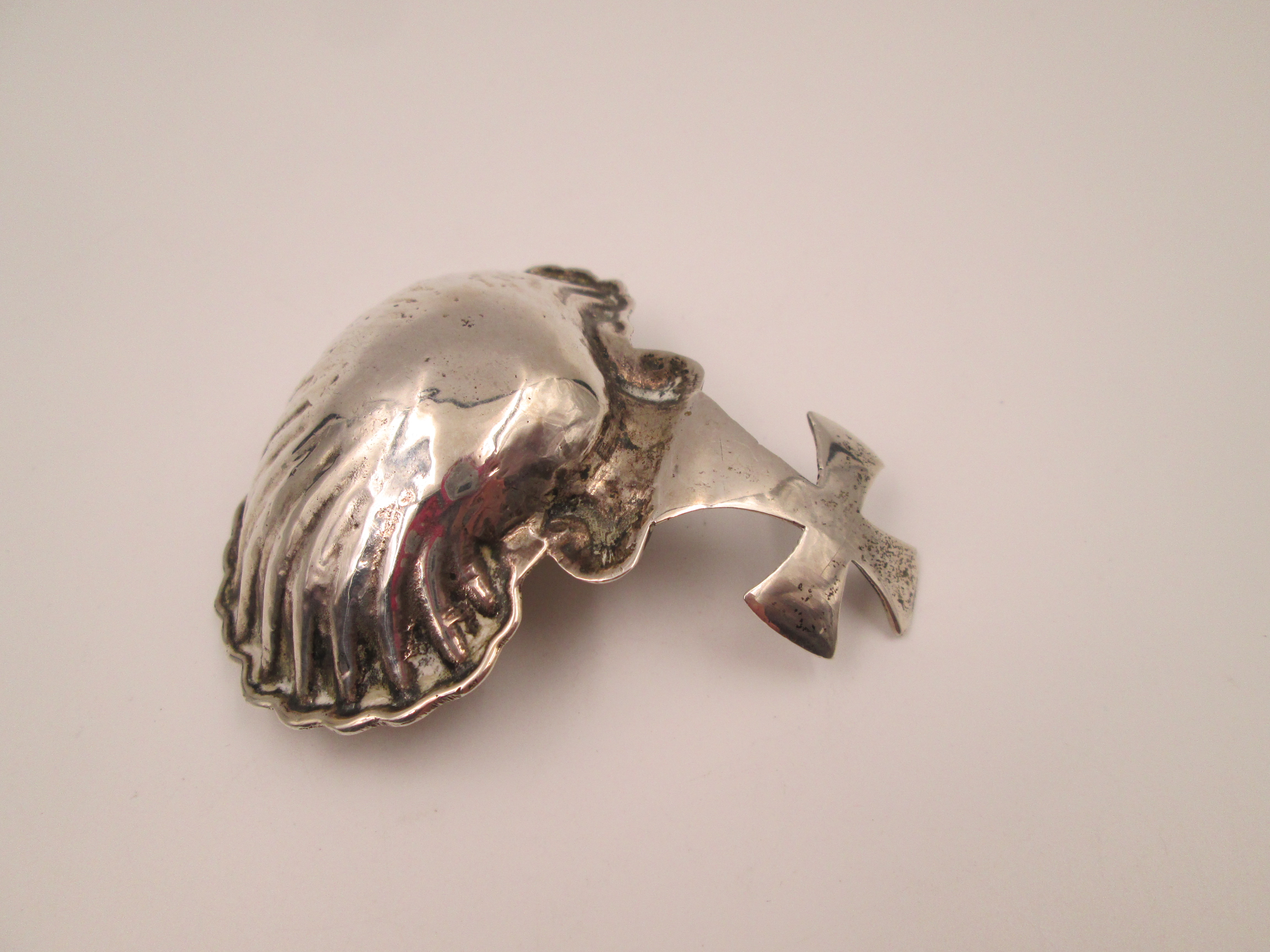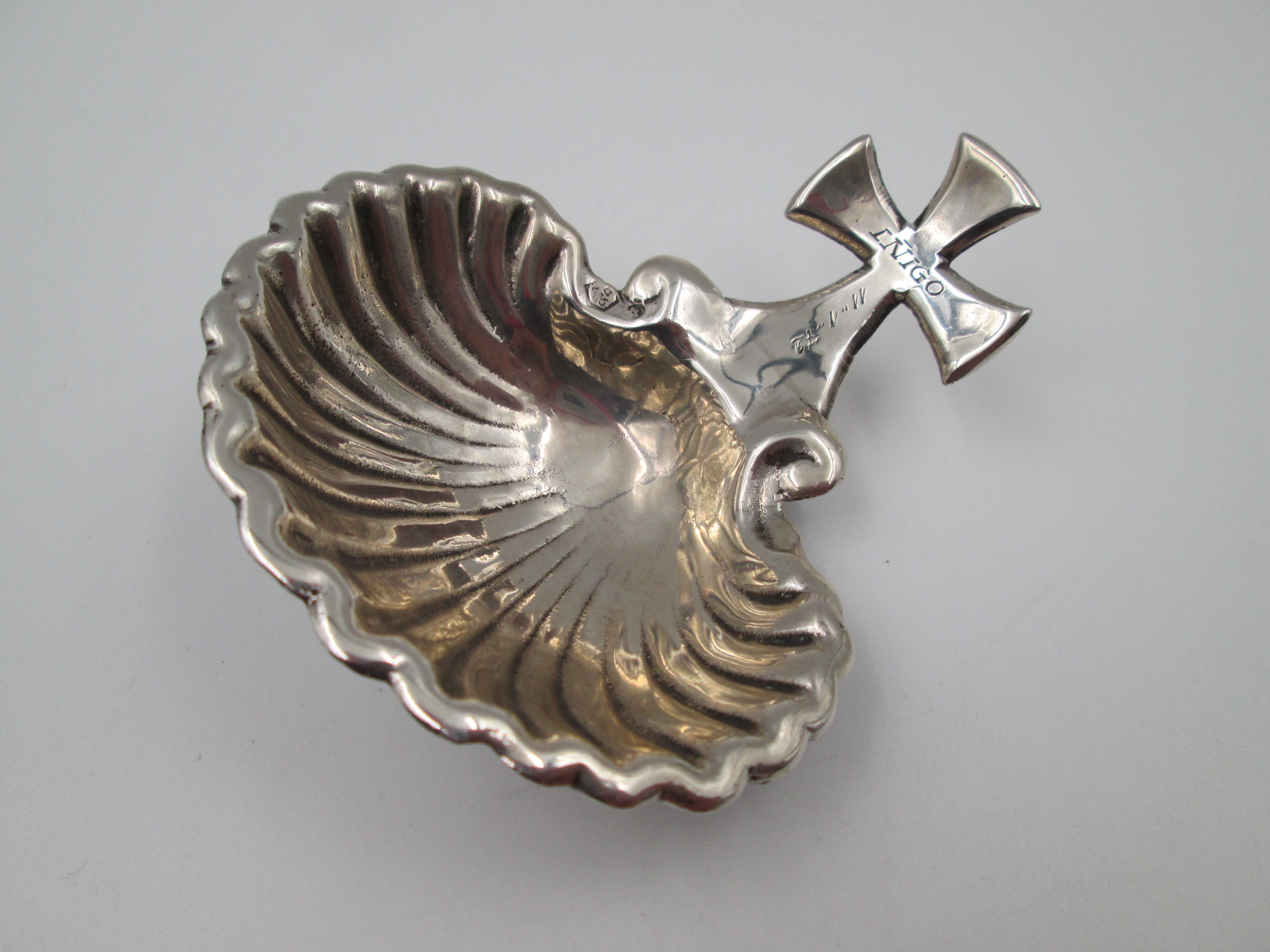 Rare Baptism shell with templar cross on top. 925 sterling silver. Hallmarks. Spain. 1970s