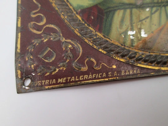 Sacred Heart of Jesus plaque. Lithographed tinplate. 1940. Barña