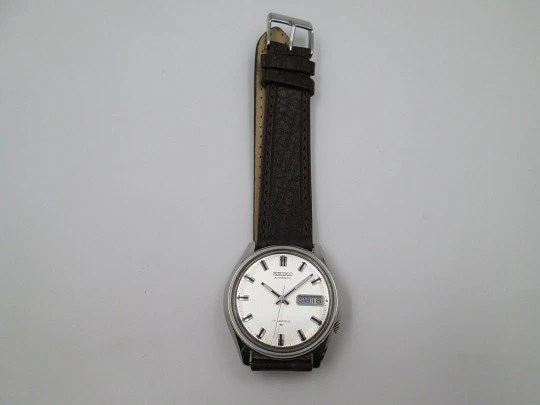 Seiko. Automatic. Stainless steel. Date and day. Leather strap. 1980's. Japan
