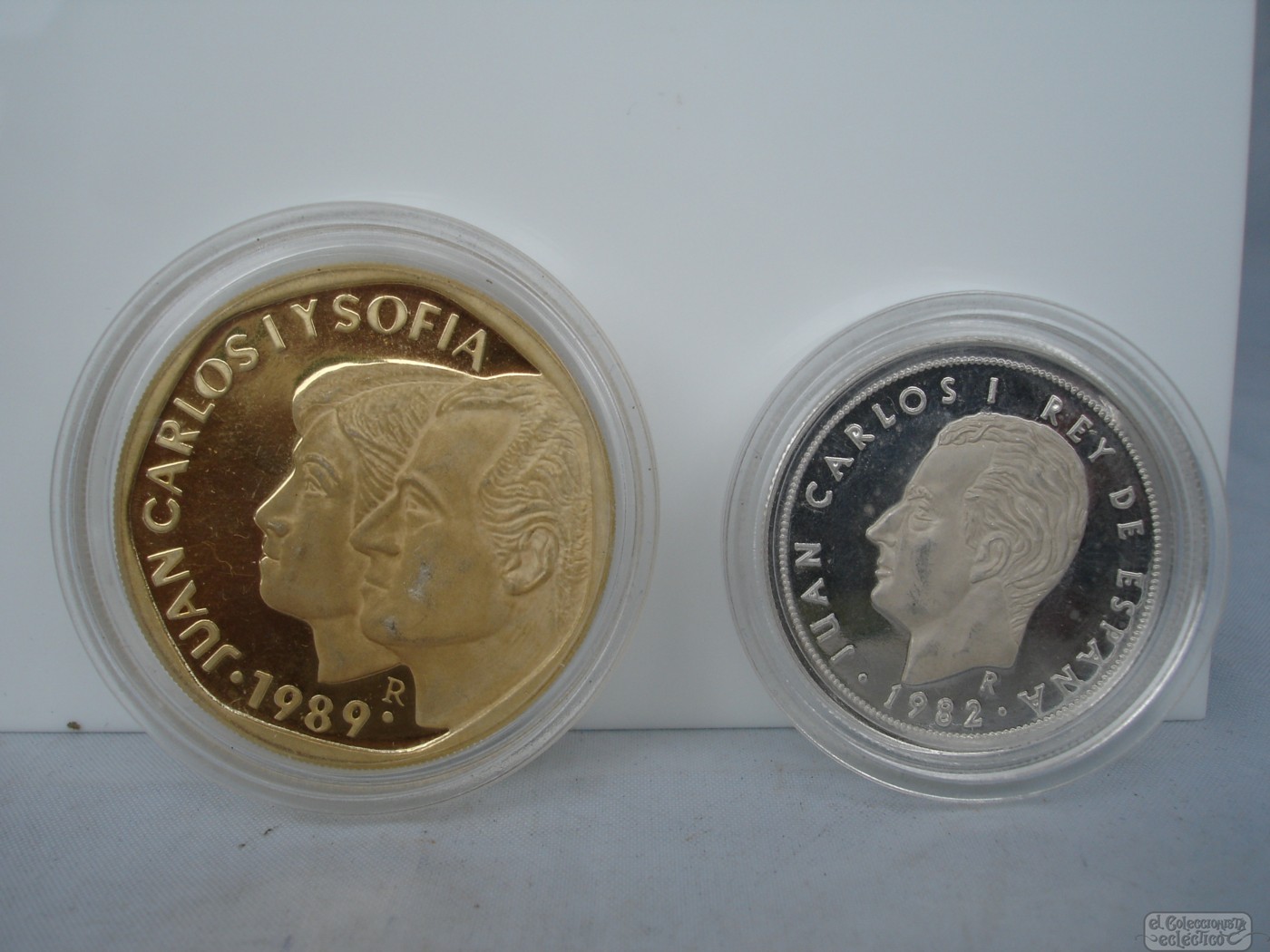 King Juan Carlos I. 500 pesetas (1989) and 25 pesetas (1982).