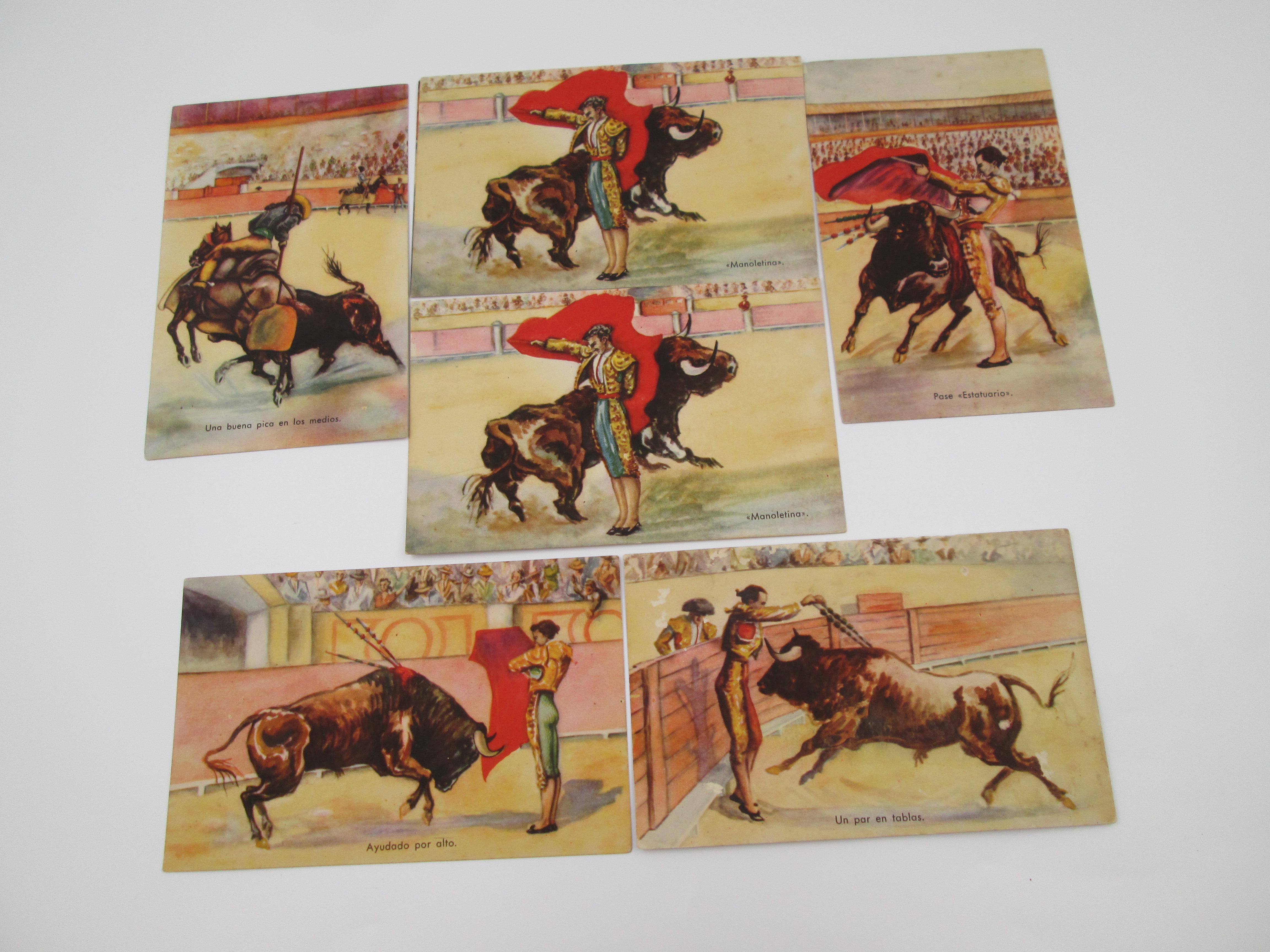 Collection of seven colored bullfighting postcards. Pablo Dümmatxen editions. 1940's