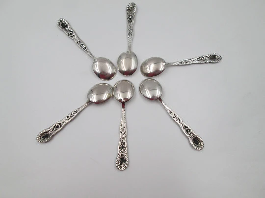 Six ornate coffee spoon set. Sterling silver. Floral and plants motifs. Europe. 1960's