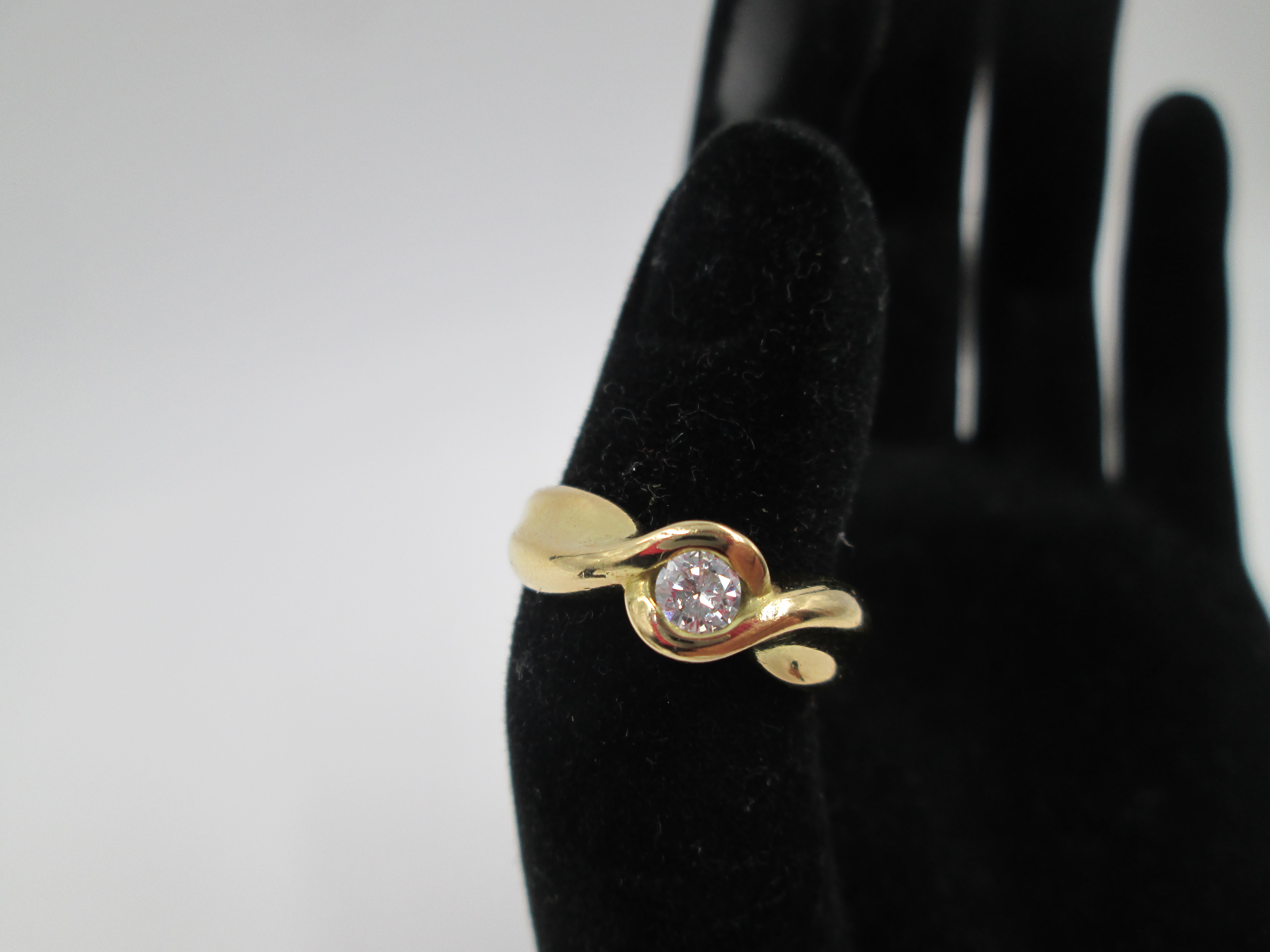 Solitaire brilliant cut 0,25 ct. diamond loop ring. 18 carat yellow gold