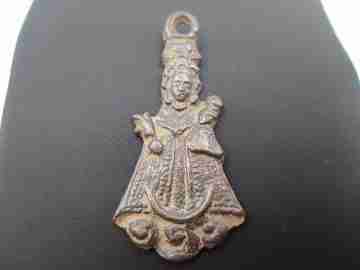 Spanish bronze medal. Virgin with Child and half moon. Ring. 18th century