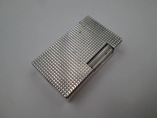 S.T. Dupont gas lighter Sterling silver plated. Diamond pattern. France. 1990's