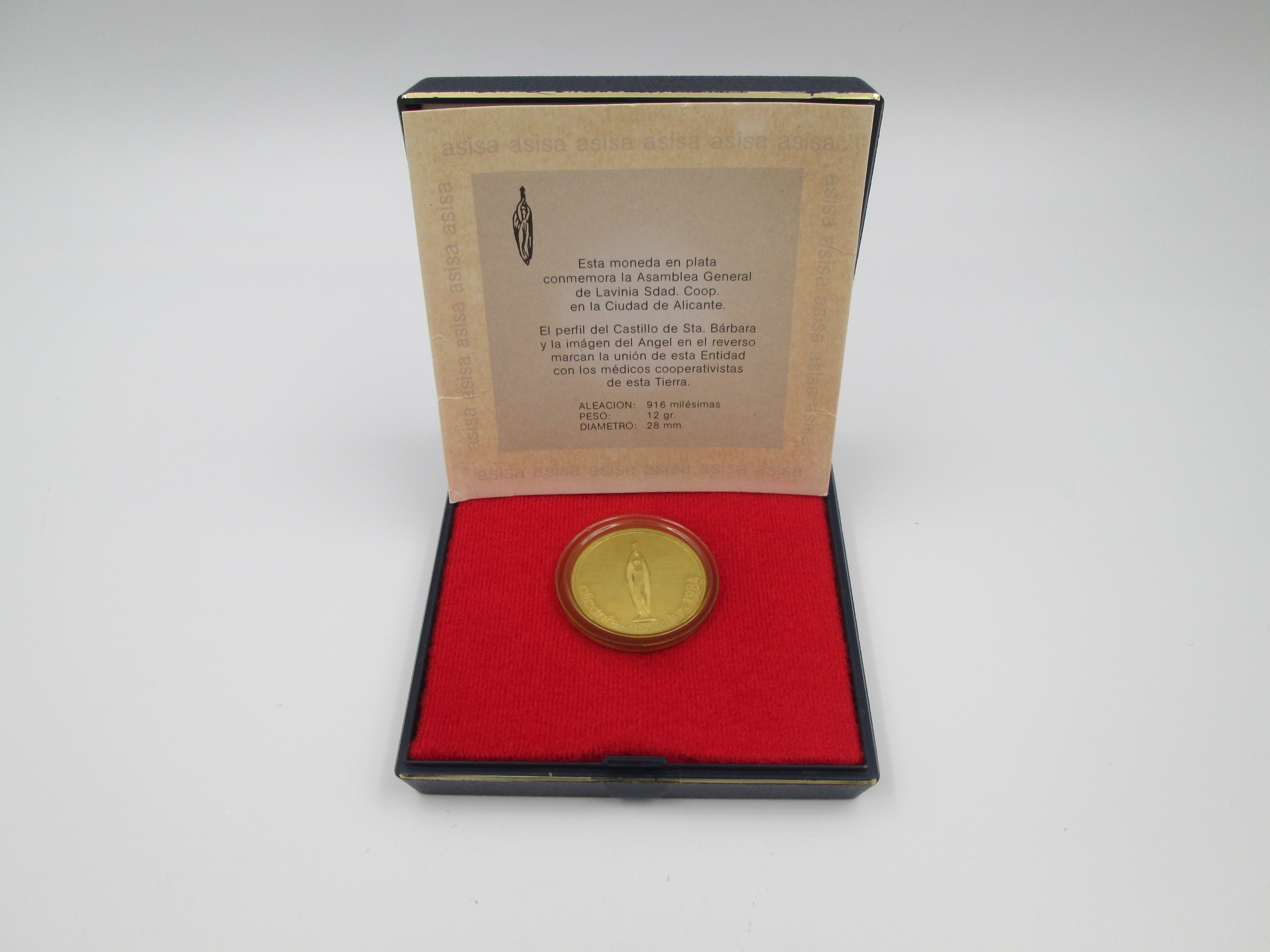 Sterling silver commemorative coin. Lavinia cooperative society. Original box. Spain. 1980's