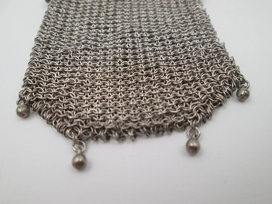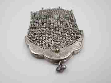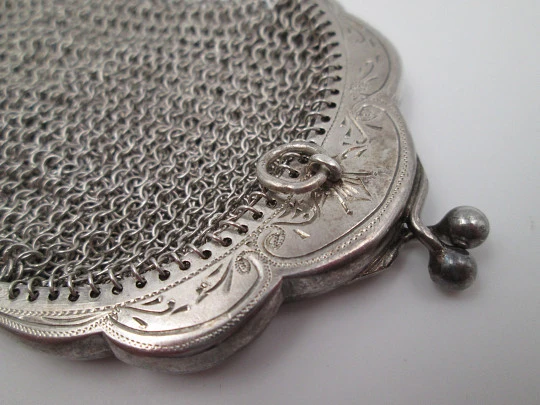 Sterling silver double ladies mesh purse. Lobed clutch frame. Vegetable motifs