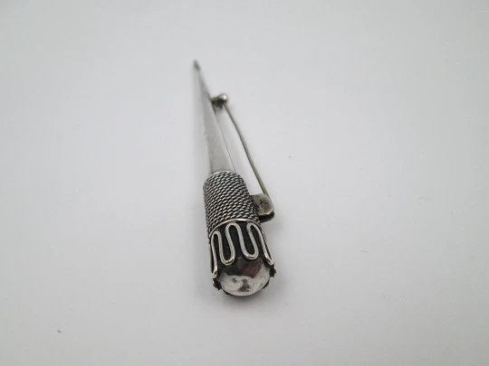 Sterling silver unisex brooch. Torch shape. Waves and cord motifs. 1950's. Europe